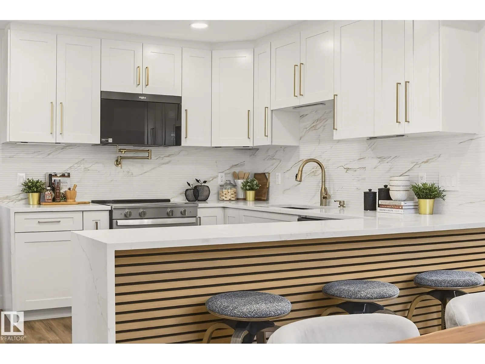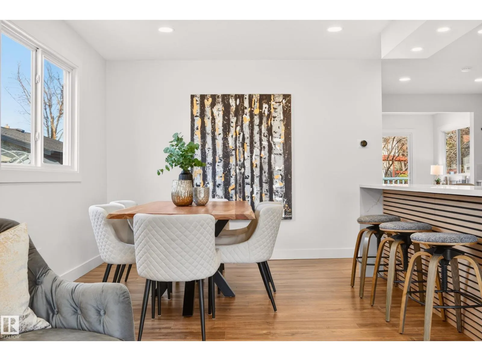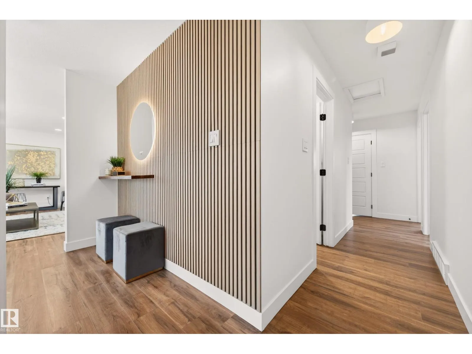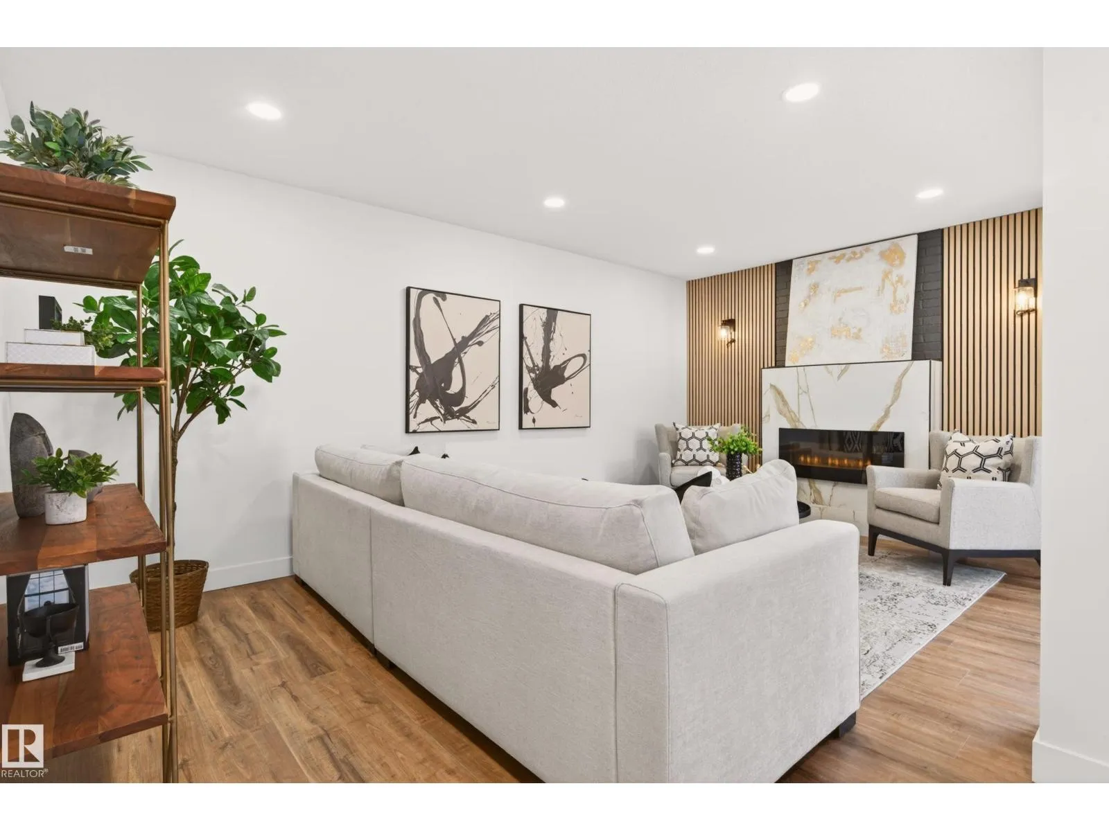Situated in the family-friendly community of Belmead, this beautifully renovated home offers over 2,880 sq ft of finished living space. The open layout is featuring a spacious living room with an electric fireplace, a modern kitchen with stylish cabinets, tile backsplash, SS appliances, quartz countertops, pantry, and dining area adjacent to the kitchen. For convenience, a main floor laundry