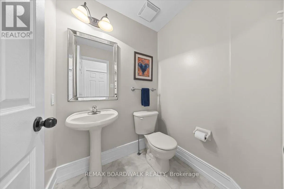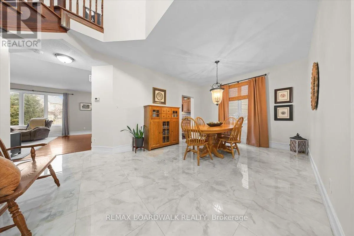 Positioned on a quiet interior street, this detached 4 bedroom home w/main floor den is defined by a balanced twin roof peaks, a covered front veranda, taupe brick front exterior, interlock walkway, & double car garage. The front entrance is highlighted by front door w/transom, opening to a two-storey high foyer w/oversized tile, hardwood flooring, high baseboards, & a circular