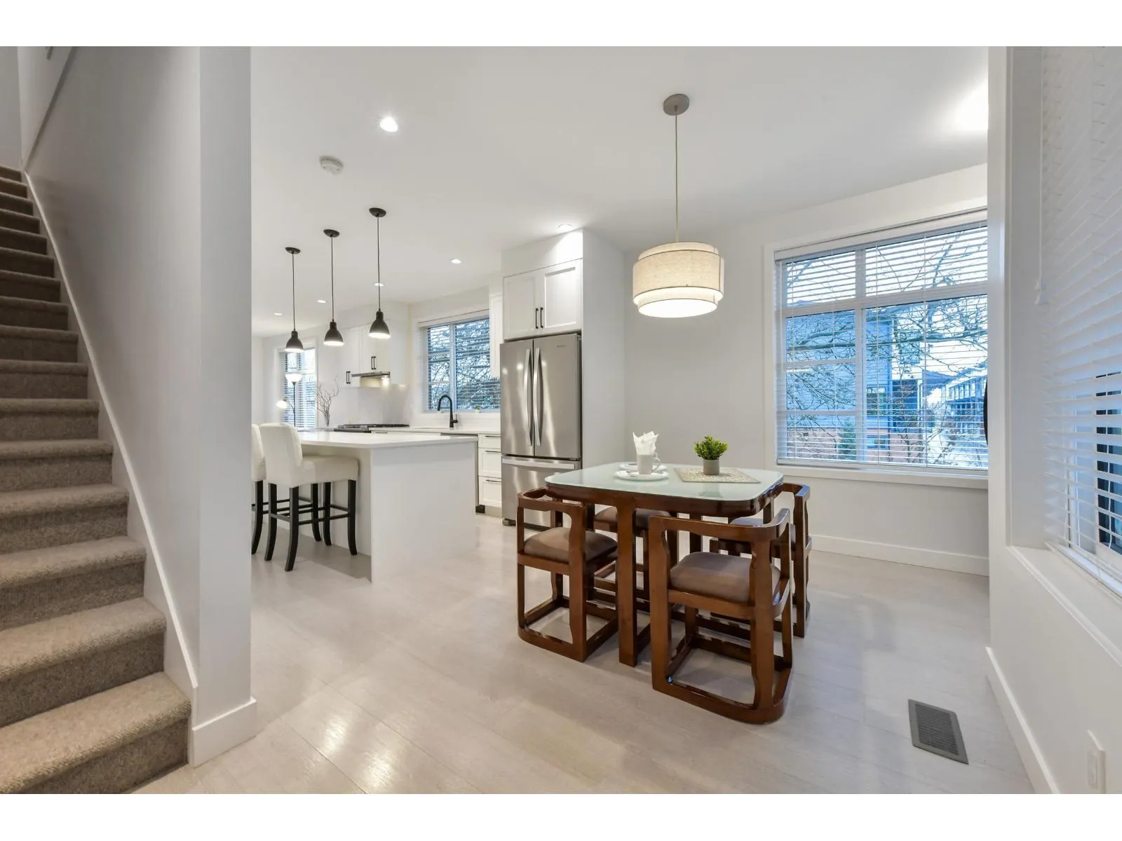 Corner townhome at Elston, featuring a rare and highly desirable floor plan. Built by Hawkston Developments, this beautifully designed community is perfectly located just steps from shops, cafés, restaurants, and transit, and only one block from Katzie Elementary School, with quick access to Highway 1. This bright home showcases a chef-inspired kitchen with S/S appliances, quartz countertops, and a spacious