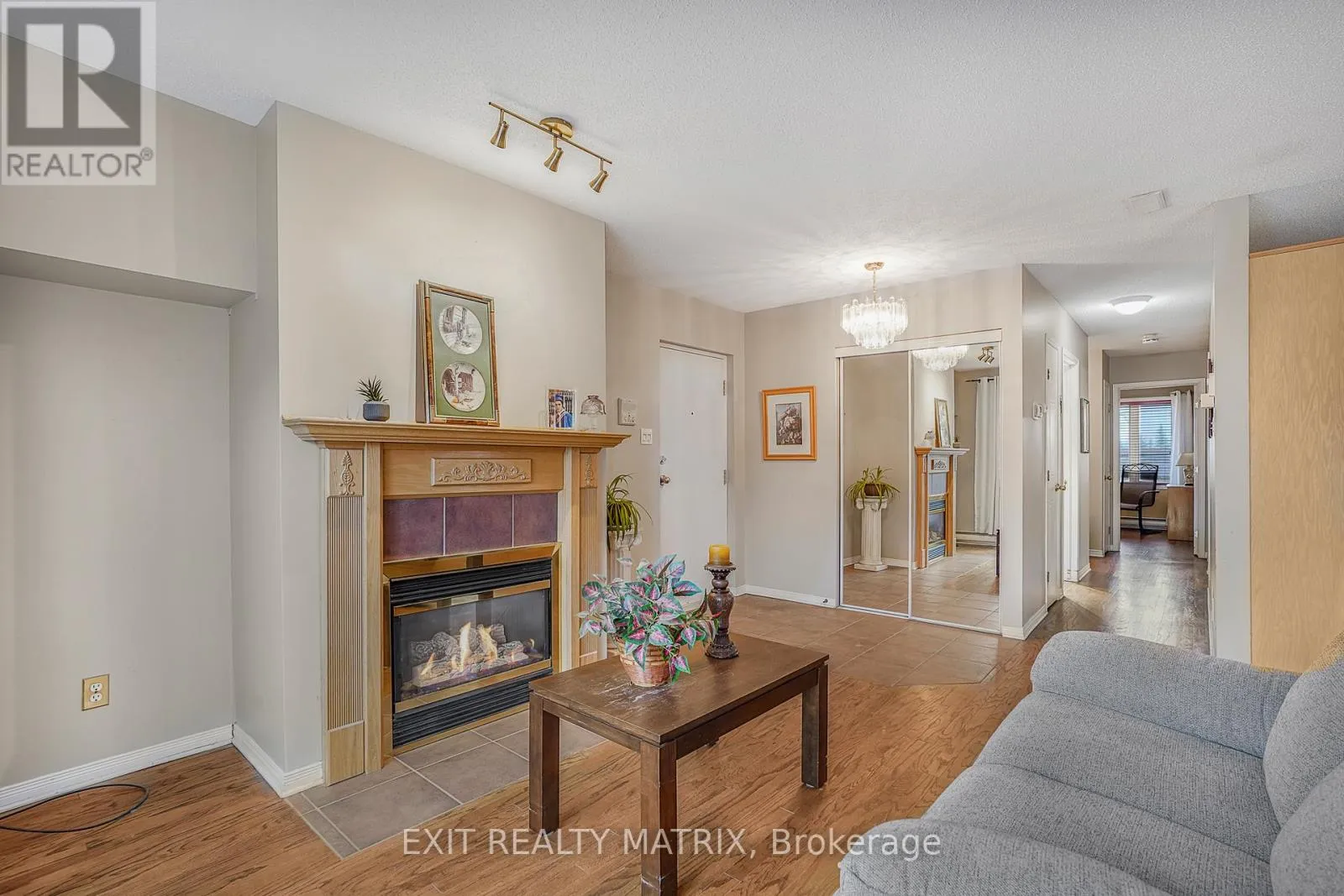 Carefree condo living in this second level unit. A cozy living room with gas fireplace. Well designed kitchen with ample cabinets and counter space, adjacent dining area with patio doors giving access to a south facing balcony. Two generous size bedrooms, full bath with separate shower and soaker tub, laundry room with storage closet. The perfect place to call home
