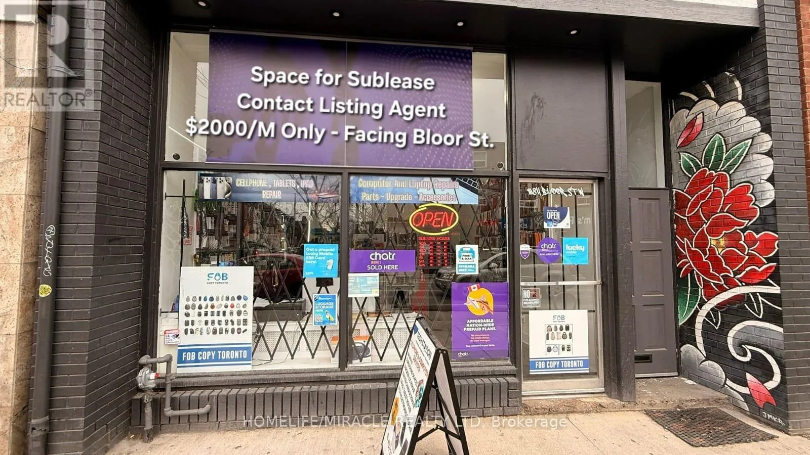 LOCATION..LOCATION LOCATION .Prime Sublease Opportunity In The Heart Of Bloor West near Bloor & Dundas West intersections! Located At 1084 Bloor St W, This Well-Maintained Commercial Space Offers A Unique Opportunity To Operate Within An Established Retail Environment. The Front Portion Is Occupied By A Busy Cellphone Store (Tech Station), While The Rear Section Is Available For Sublease-Ideal For A