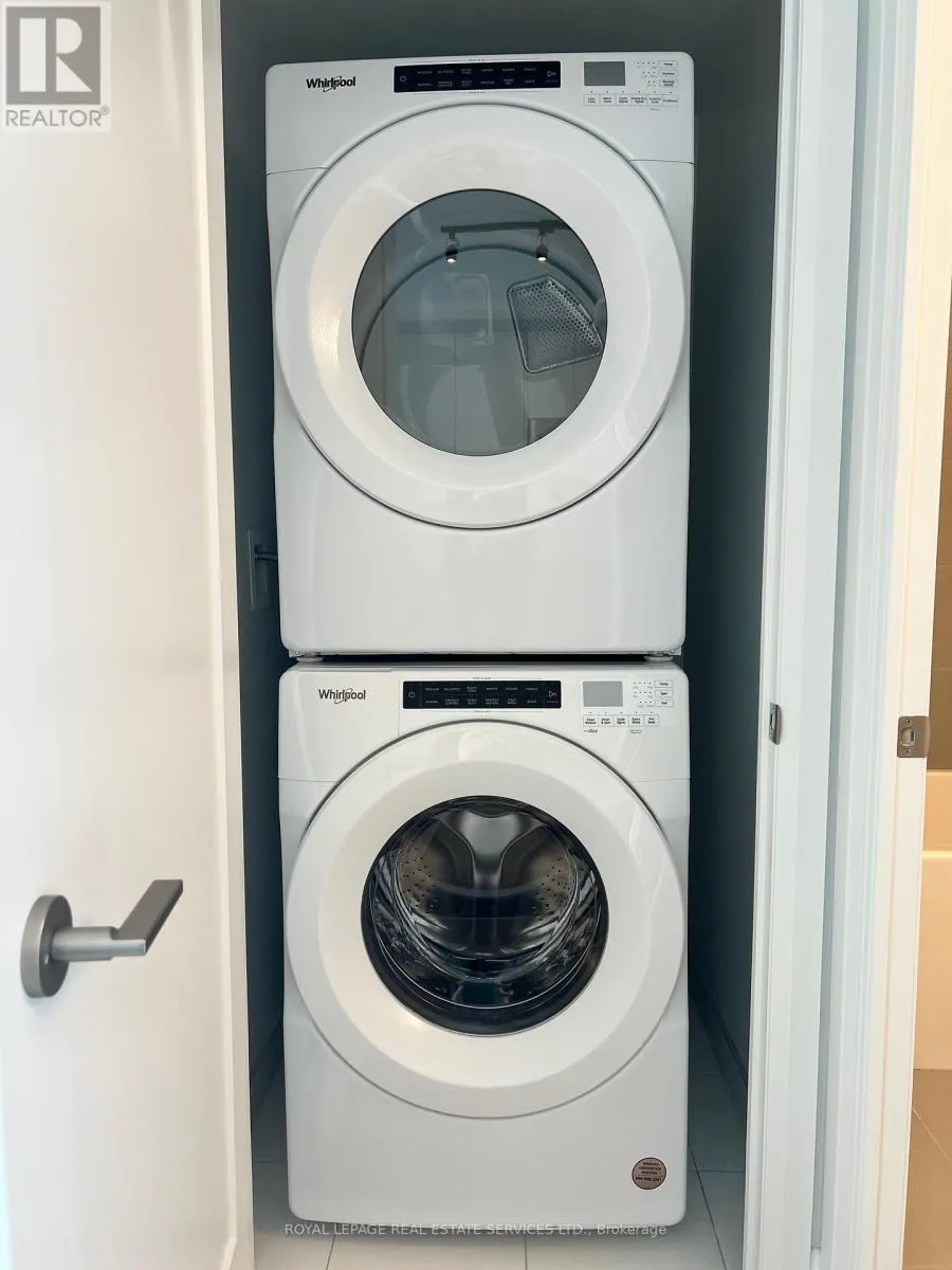 What a lovely place to live. A bright condo with a beautiful panoramic view of the City and Lake. Light neutral floors throughout. Large den with door could be a second bedroom. Beautiful kitchen with built-in fridge and dishwasher, stainless steel cook top, oven and microwave, penny tile backsplash, dine at your handy island, complete with quartz countertops. Enjoy City