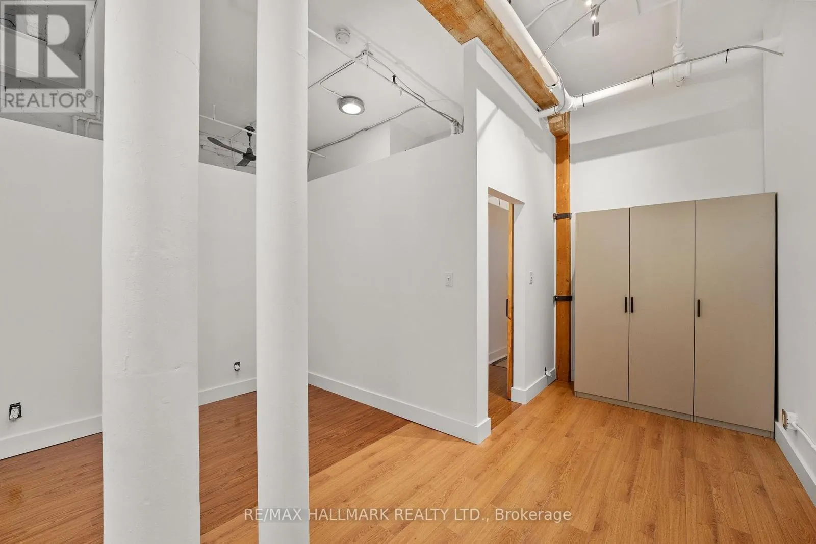 Welcome to this contemporary Rare use space with an open-concept layout, boasting 12-foot ceilings and charming exposed brick walls. Sunlight floods the primary space through expansive windows, illuminating the entire area. The kitchenette features stylish wood cabinets, enhancing the aesthetic appeal. Hardwood floors throughout the unit, seamlessly connect the space. Versatility is key with a rear room, providing flexibility to