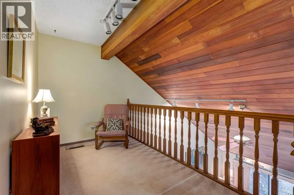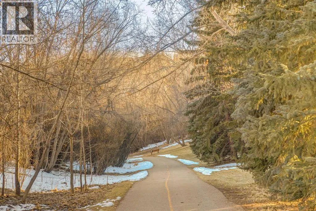 This mid-century modern townhome is an end unit next to a grove of mature trees and overlooking a park. The Bow River Pathway is just beyond the back yard and provides a direct, 15-minute walk to the river and all the surrounding amenities including off-leash dog parks, swimming areas and beaches. Built in 1972, this home is mostly original with