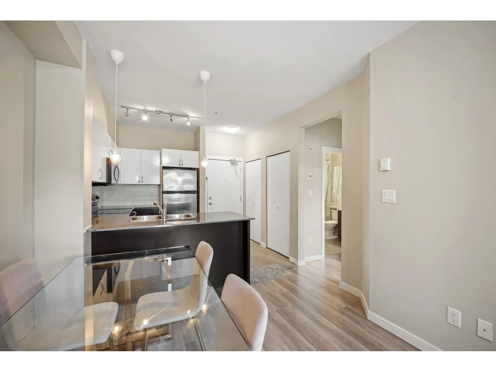 Enjoy bright, south-facing living in this corner unit at QUATTRO 2! This modern 1 bed, 1 bath home features an open concept layout with granite countertops, stainless steel appliances, and in-suite laundry. Step out to the largest private balcony in the building which includes over 100sq ft! perfect for relaxing or entertaining. Located in the heart of Surrey City Centre,