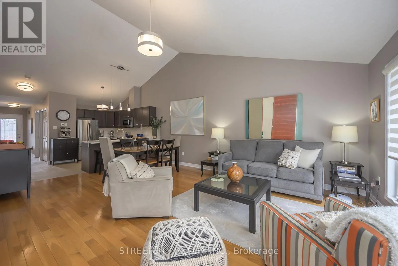 Welcome to this beautifully maintained bungalow townhome condominium offering stylish upgrades, thoughtful design, and quality construction in the highly desirable Blinn Gardens Condominium community. With over 2200 sq. ft. of finished living space, this “Trillium” floorplan features a bright, open-concept layout perfect for comfortable living and entertaining. The great room impresses with vaulted ceilings, hardwood flooring. The principal bedroom also