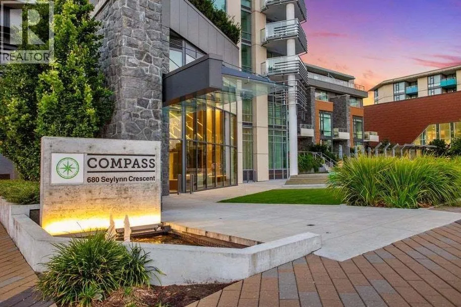 Step into elevated North Shore living at Compass in Seylynn Village by Denna Homes. This bright 2 bed, 2 bath home offers an efficient open concept layout across 764 sq ft, maximizing every inch of space. Quietly positioned on the preferred side of the building, floor to ceiling windows showcase sweeping water and city views. The kitchen features a gas