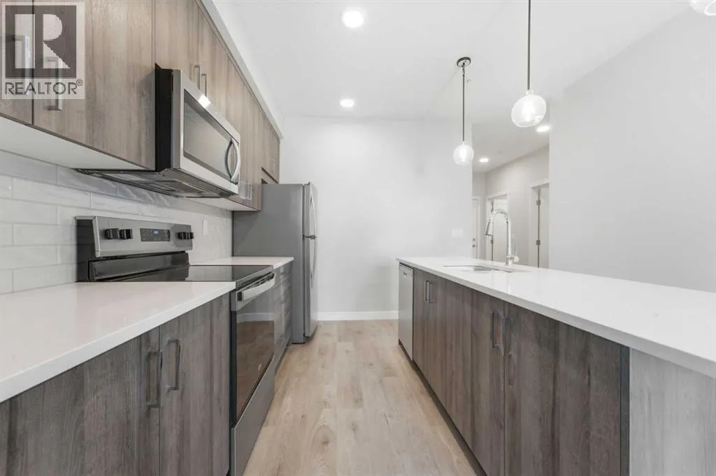 Welcome to this stunning brand-new 2-bedroom, 2-bathroom condo in the highly desirable Fish Creek Exchange community in Shawnee Slopes. Built in 2025, this thoughtfully designed unit offers approximately 742 sq ft (builder size) of modern living space, perfect for first-time buyers, investors, or downsizers.Step inside to discover high ceilings, luxury vinyl plank flooring, and a bright open concept layout that