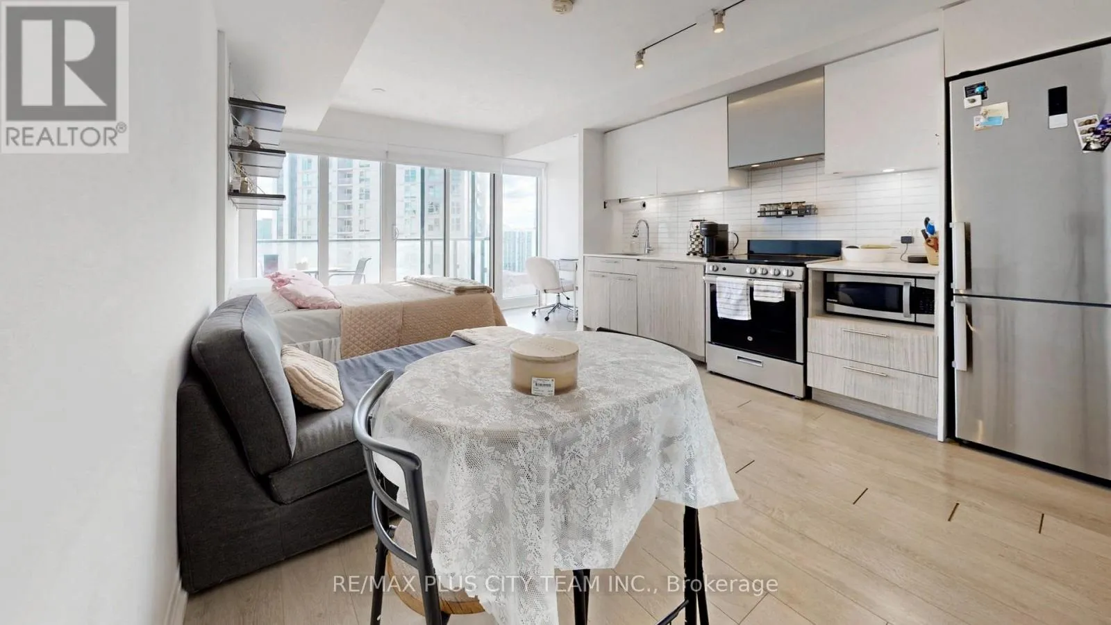 Step into elevated downtown living with this stylish and efficiently designed studio suite, showcasing stunning east-facing city views. Floor-to-ceiling windows flood the space with natural light, creating a bright and airy atmosphere, while the 49 sq ft private balcony offers the perfect outdoor retreat to unwind above the city. The sleek, modern kitchen is thoughtfully appointed with built-in appliances, blending