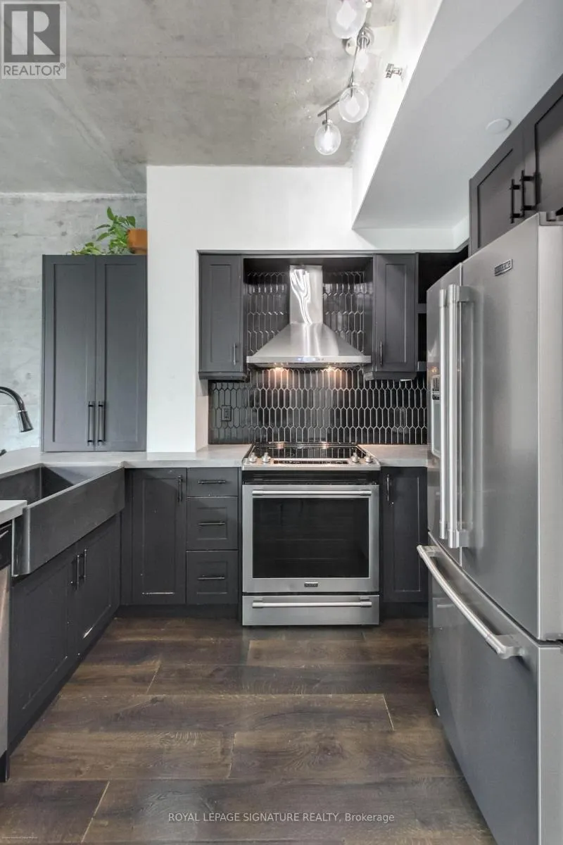 Incredible Value! Your dream two-storey loft in the heart of vibrant Liberty Village awaits. This spectacular 1-bedroom + den loft-like condo spans approximately 830sqft + balcony and is bathed in natural sunlight through dramatic 18-foot floor-to-ceiling windows. Featuring soaring ceilings, exposed concrete accents, and an open-concept layout, this stylish loft delivers true modern urban living.The renovated contemporary kitchen is equipped