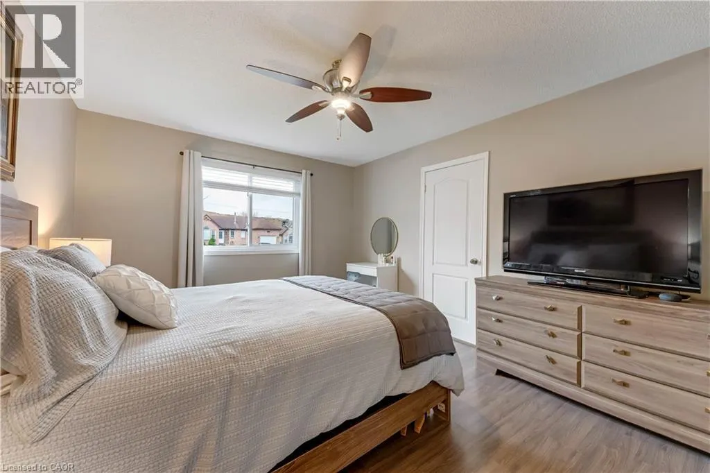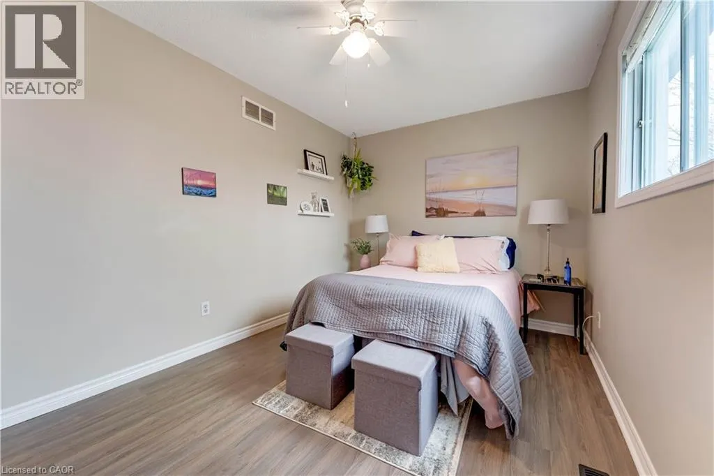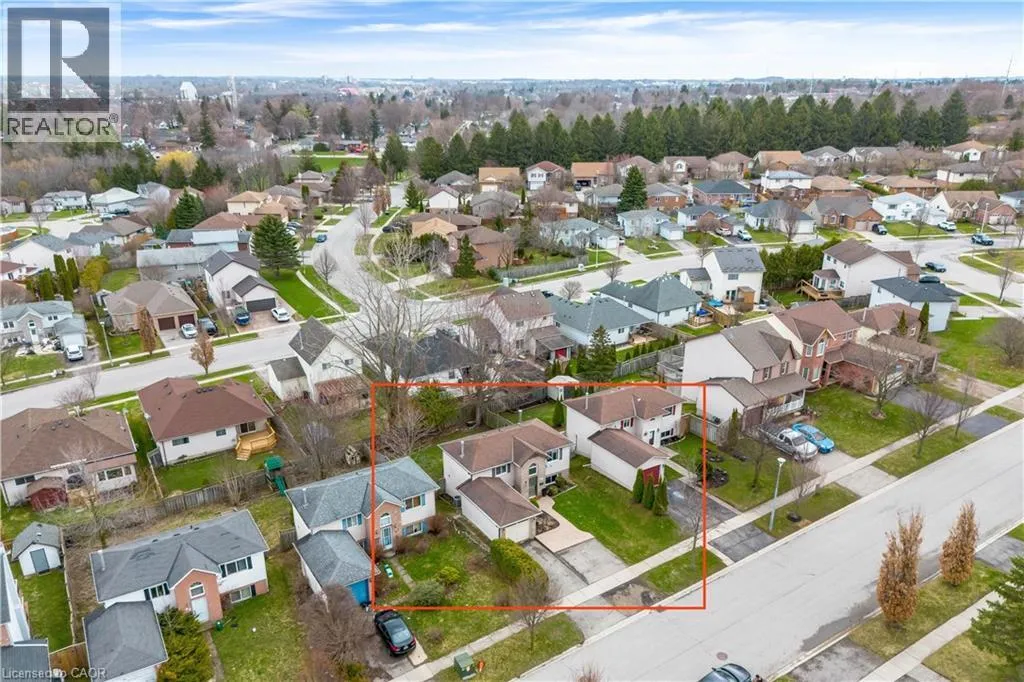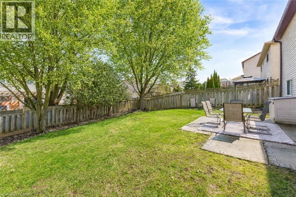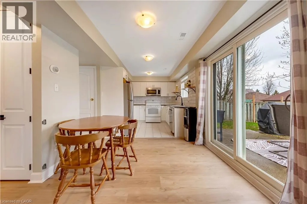 garage door (2023) set the tone for the care and attention poured into this home. Step inside to be greeted by soaring ceilings that create an immediate sense of openness and light. The heart of the home is the stunning, freshly updated kitchen (2021), featuring crisp white cabinetry, a modern white backsplash, and newer appliances including a fridge (2022) and dishwasher (2021). The open-concept dining and family room flow seamlessly together, making it effortless to entertain guests or enjoy cozy nights in. Throughout the home, luxury vinyl flooring (2021 upstairs, 2023 basement) adds both durability and elegance, while a fresh coat of paint (2024) enhances the bright and inviting atmosphere. The updated powder room (2021) showcases a new vanity, toilet, and stylish tile work. Downstairs, the finished basement offers additional living space and leads to newly installed sliding doors (2023), opening to your private backyard retreat. Surrounded by mature trees, this outdoor space is perfect for relaxing, hosting, and enjoying the seasons. Upstairs, you’ll find three generously sized bedrooms, each with ample closet space, along with a well-appointed full bathroom. The spacious primary bedroom is a true retreat, complete with custom barn doors leading into the closet—adding both function and character. Additional highlights include a 30-amp EV charger in the garage and a highly desirable central location just minutes from parks and trails like Southside Park, shopping, restaurants, schools, and quick access to Highway 401. (id:62650)