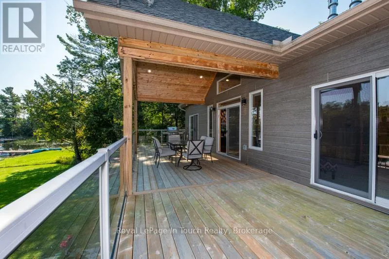 Welcome to this 7 Year old, 3 Bedroom, 3 Bathroom Four-season Cottage! This Turn Key Cottage features a spacious open concept Living, Dining, Kitchen and Great Room area all of which opens up to a large open as well as covered Deck area that all overlook the Lake. Both the Upper and Lower Decks add Great living Space, Perfect for