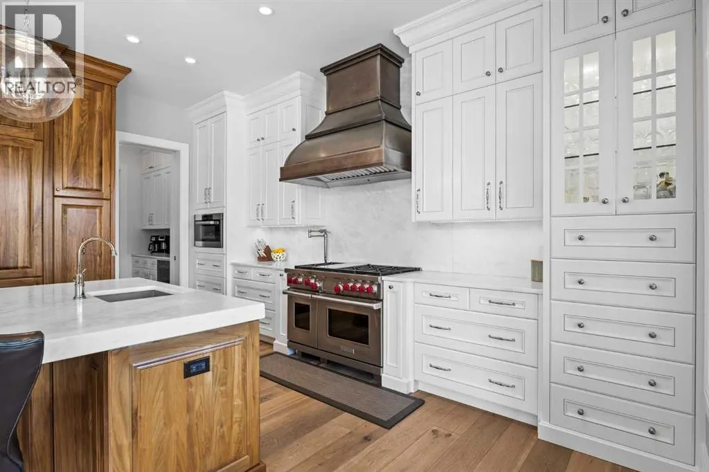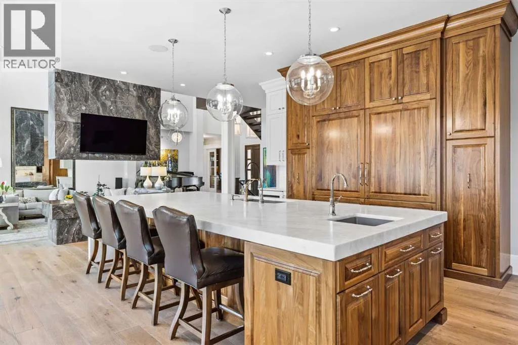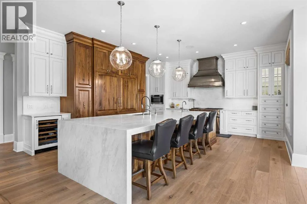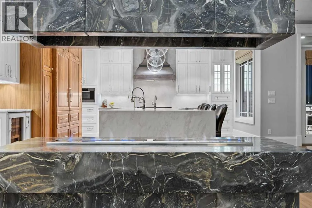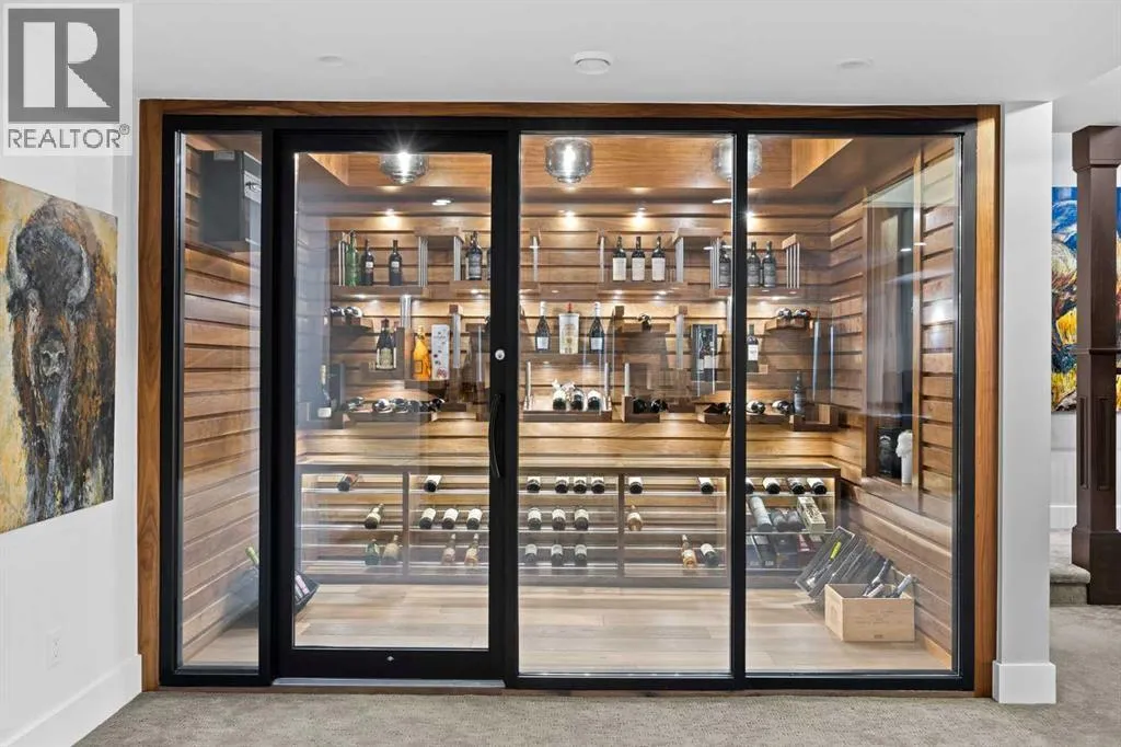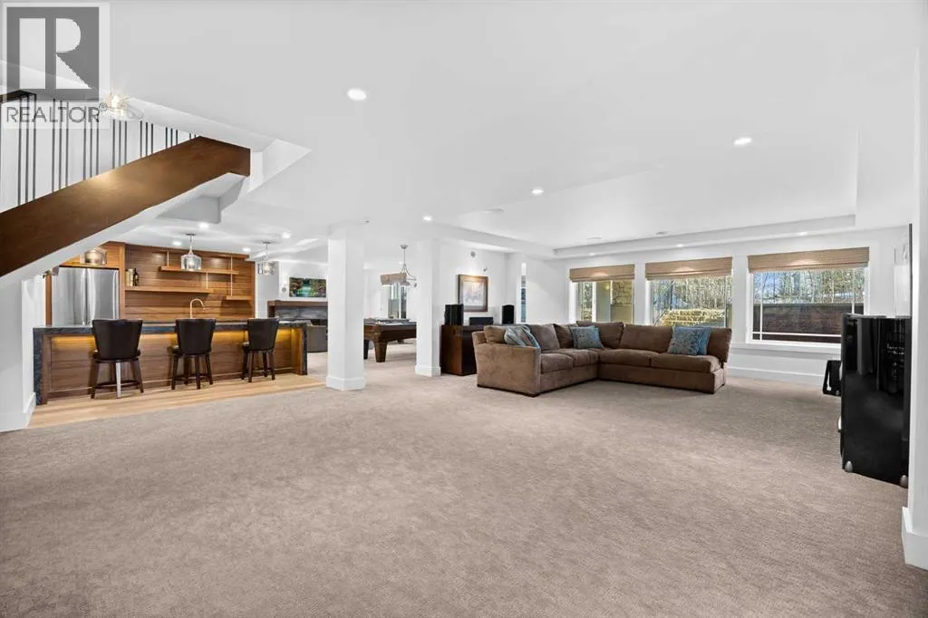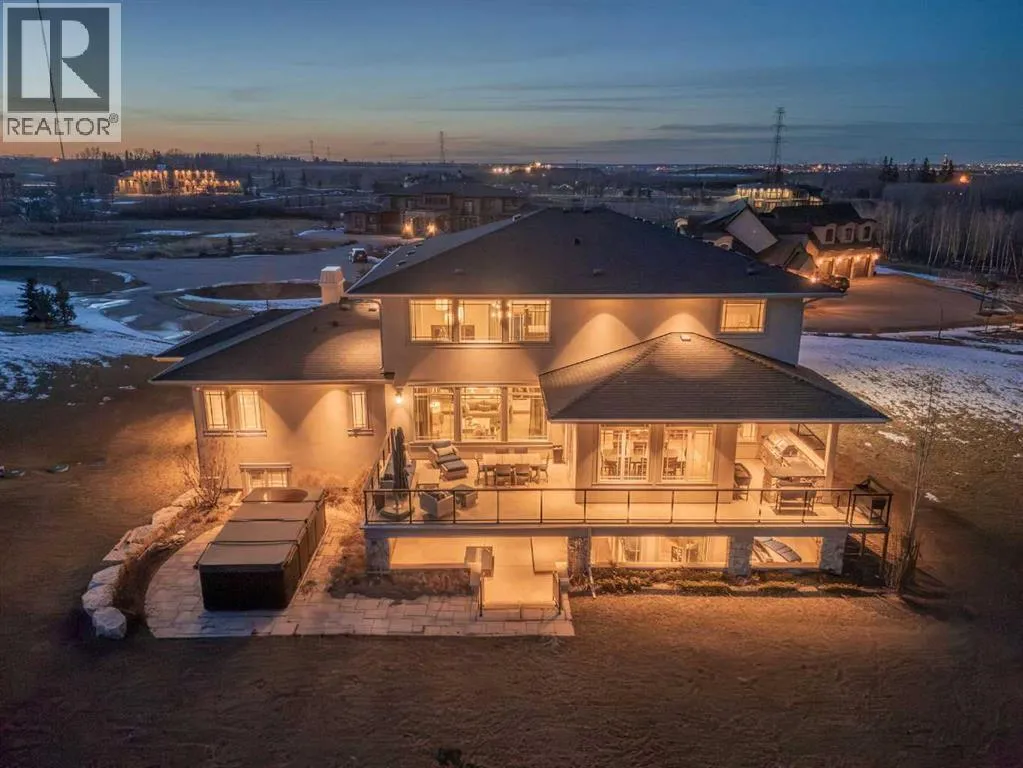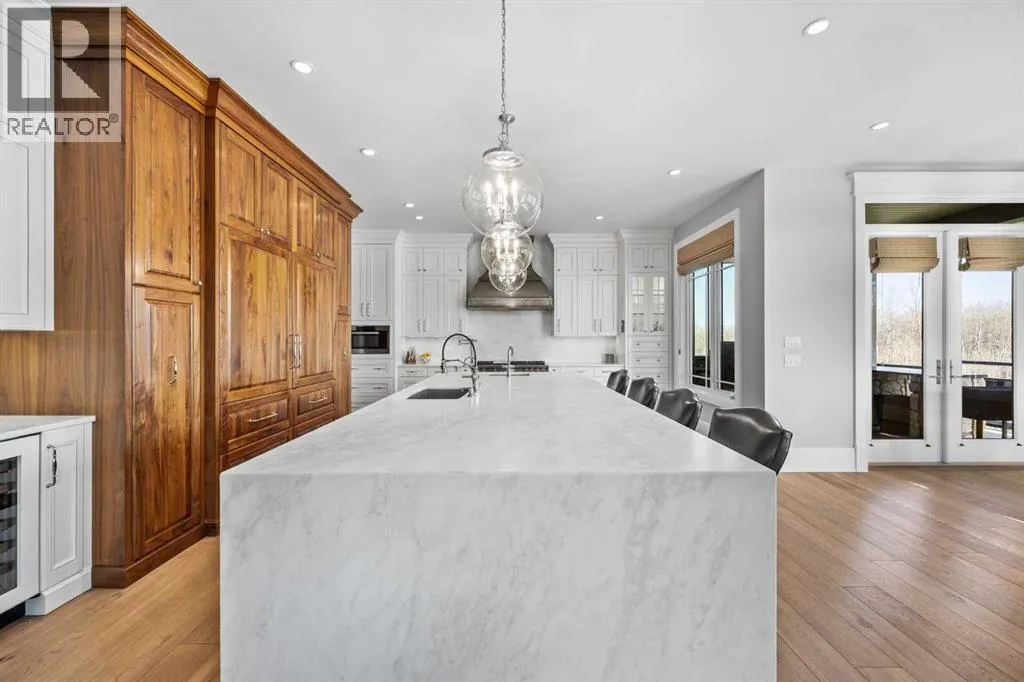 and unwinds.From the moment you step inside, the home makes an impression. Soaring ceilings, expansive windows, and a dramatic floor-to-ceiling feature fireplace anchor the main living space, while natural light pours in from every angle, pulling the outdoors in. The layout flows effortlessly, balancing open-concept living with defined, functional spaces including a main floor office and a private primary retreat.The kitchen is a true centrepiece. Fully custom and built to perform, it features dual Sub-Zero fridge/freezer combinations, a Wolf range, steam oven, bar fridge, and a statement Hammersmith hood fan. A massive island invites gathering, while a walk-through pantry and an exceptional mudroom with built-in dog wash and laundry keep everyday life organized behind the scenes.Upstairs, you’ll find generous secondary bedrooms, a central family lounge, and a second full laundry room, creating separation and flexibility for growing families or guests.The walkout lower level is designed for lifestyle. A full recreation space, games area with pool table, temperature-controlled wine room, bar with fridge and dishwasher, and a dedicated gym create an ideal environment for both entertaining and everyday enjoyment. A surround sound system and whole-home Control4 automation extend seamlessly throughout the home, including outdoor spaces.Comfort and efficiency are elevated with features like air conditioning, reverse osmosis water system, in-floor heating in select areas, central vacuum, and integrated audio throughout the home and garage.The exterior is equally impressive. Surrounded by mature trees and backing onto a ravine, the setting is private and peaceful. Enjoy the fully equipped outdoor BBQ kitchen, expansive deck spaces, and a swim spa, along with irrigation systems for both landscaped areas and broader property use. A fully enclosed dog run adds another thoughtful touch for acreage living.Car enthusiasts and hobbyists will appreciate the oversized quad garage with heated slab, natural light, and commercial side-mount openers.This is a home that simply doesn’t compromise. Every detail has been considered, from the custom built-ins and ample storage solutions to the technology, mechanical systems, and overall design.A rare offering where craftsmanship, setting, and functionality come together in a truly meaningful way. (id:64429)
