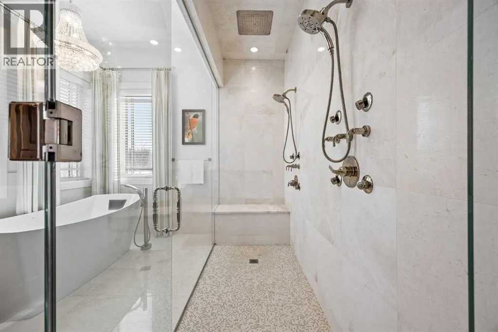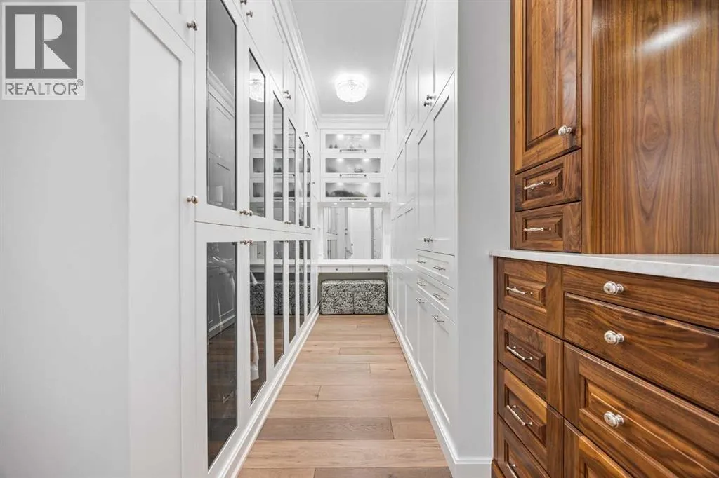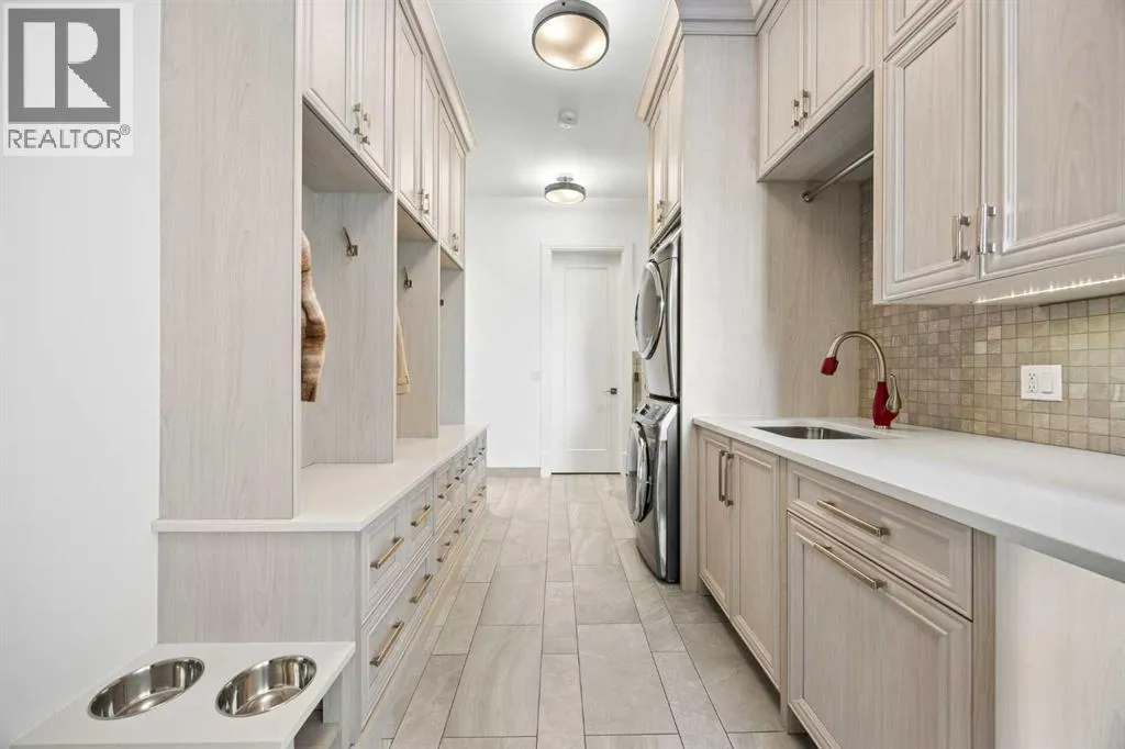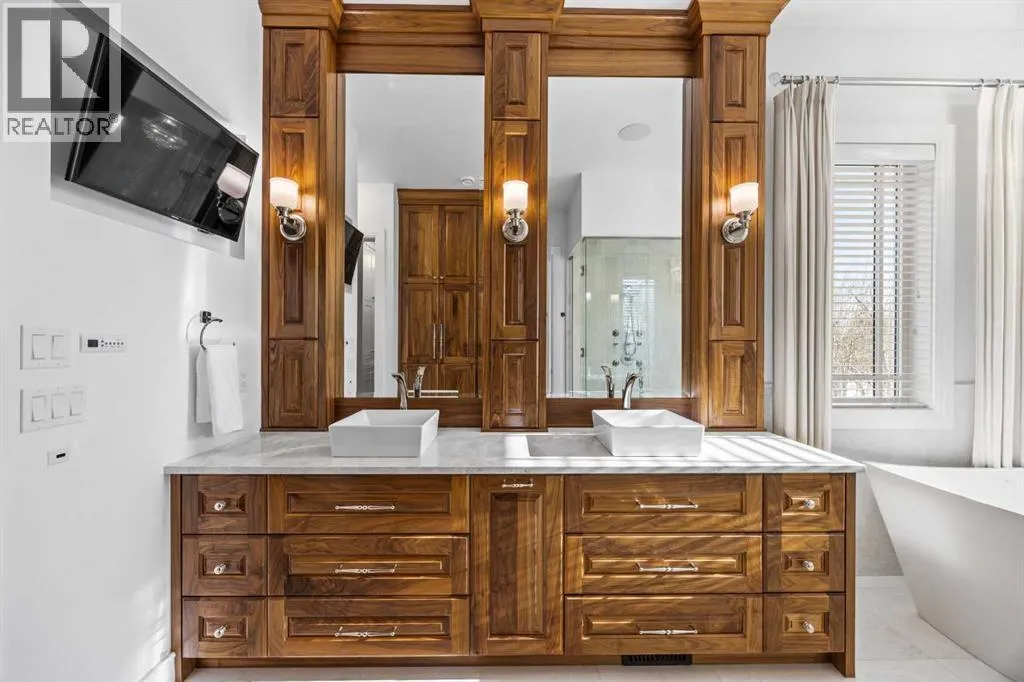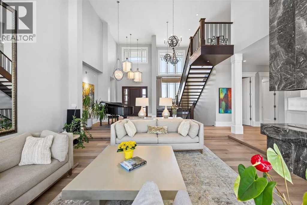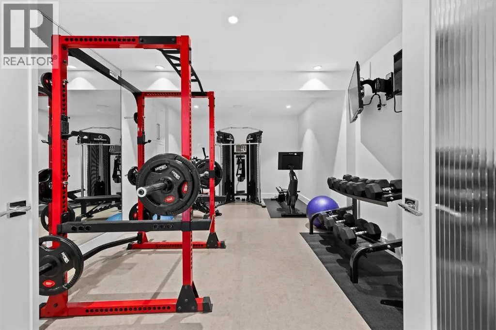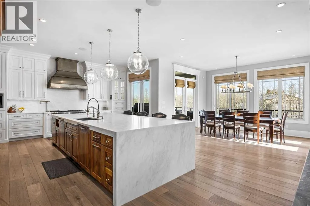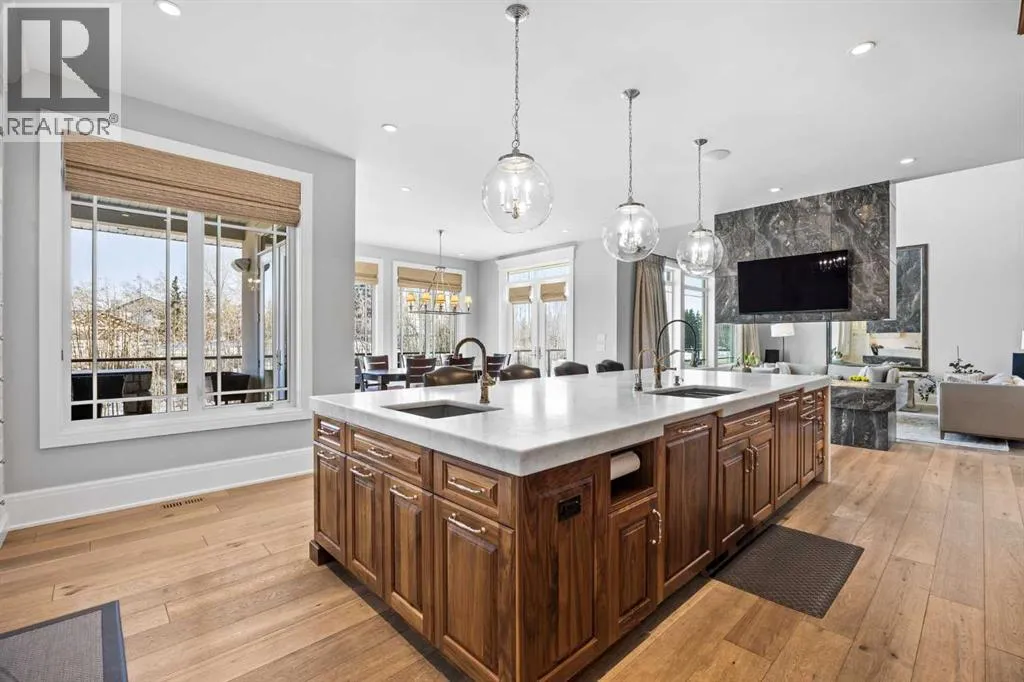 and unwinds.From the moment you step inside, the home makes an impression. Soaring ceilings, expansive windows, and a dramatic floor-to-ceiling feature fireplace anchor the main living space, while natural light pours in from every angle, pulling the outdoors in. The layout flows effortlessly, balancing open-concept living with defined, functional spaces including a main floor office and a private primary retreat.The kitchen is a true centrepiece. Fully custom and built to perform, it features dual Sub-Zero fridge/freezer combinations, a Wolf range, steam oven, bar fridge, and a statement Hammersmith hood fan. A massive island invites gathering, while a walk-through pantry and an exceptional mudroom with built-in dog wash and laundry keep everyday life organized behind the scenes.Upstairs, you’ll find generous secondary bedrooms, a central family lounge, and a second full laundry room, creating separation and flexibility for growing families or guests.The walkout lower level is designed for lifestyle. A full recreation space, games area with pool table, temperature-controlled wine room, bar with fridge and dishwasher, and a dedicated gym create an ideal environment for both entertaining and everyday enjoyment. A surround sound system and whole-home Control4 automation extend seamlessly throughout the home, including outdoor spaces.Comfort and efficiency are elevated with features like air conditioning, reverse osmosis water system, in-floor heating in select areas, central vacuum, and integrated audio throughout the home and garage.The exterior is equally impressive. Surrounded by mature trees and backing onto a ravine, the setting is private and peaceful. Enjoy the fully equipped outdoor BBQ kitchen, expansive deck spaces, and a swim spa, along with irrigation systems for both landscaped areas and broader property use. A fully enclosed dog run adds another thoughtful touch for acreage living.Car enthusiasts and hobbyists will appreciate the oversized quad garage with heated slab, natural light, and commercial side-mount openers.This is a home that simply doesn’t compromise. Every detail has been considered, from the custom built-ins and ample storage solutions to the technology, mechanical systems, and overall design.A rare offering where craftsmanship, setting, and functionality come together in a truly meaningful way. (id:64429)