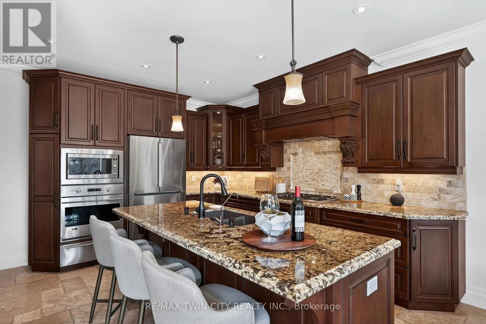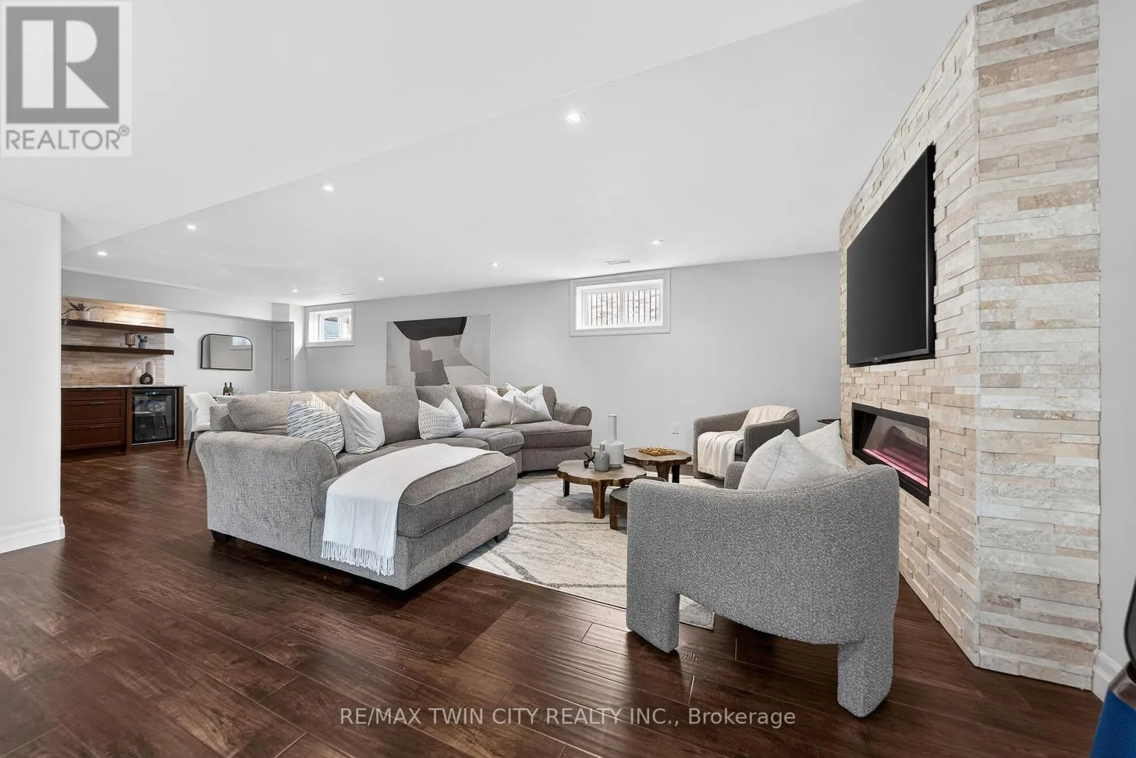 rms with coffered ceilings & detailed millwork. The home is anchored by a stunning 2-storey great rm with gas fireplace & oversized windows flooding the space with natural light. The well-appointed Chervin kitchen features a lrg centre island, granite counters, premium appliances, under-cabinet lighting, backsplash, & a bright breakfast area with walkout to the backyard & covered back porch. The main flr also offers a private office/potential 6th bedrm, mudrm/laundry rm, & powder rm. Upstairs offers 4 spacious bedrms, including an expansive primary retreat with tray ceiling, feature wall with linear electric fireplace, sitting area, walk-in closet with built-ins, additional dual closets, & a 5-pce ensuite with dual vanities, tiled glass shower, & jacuzzi tub. 3 additional sizable bedrms & a 5-pce main bathrm complete the upper level. The fully finished lower level features a lrg rec rm with electric fireplace, additional bedrm, 3-pce bathrm, wet bar (in-law potential), & ample storage. Hardwood & natural stone flring, custom ceiling treatments, crown moulding, curated millwork, & custom window coverings throughout. Set on a professionally landscaped lot with interlocking driveway, covered back porch, expansive patio, & fully fenced private backyard with mature trees, hardscaping, & perennial gardens. Located just mins to top-rated schools, U of W & Wilfrid Laurier University, RIM Park, Grey Silo Golf Club, trails, St. Jacobs Market, & major commuter routes. A rare opportunity to own a beautifully finished home in one of Waterloo’s most desirable neighbourhoods. (id:62650)