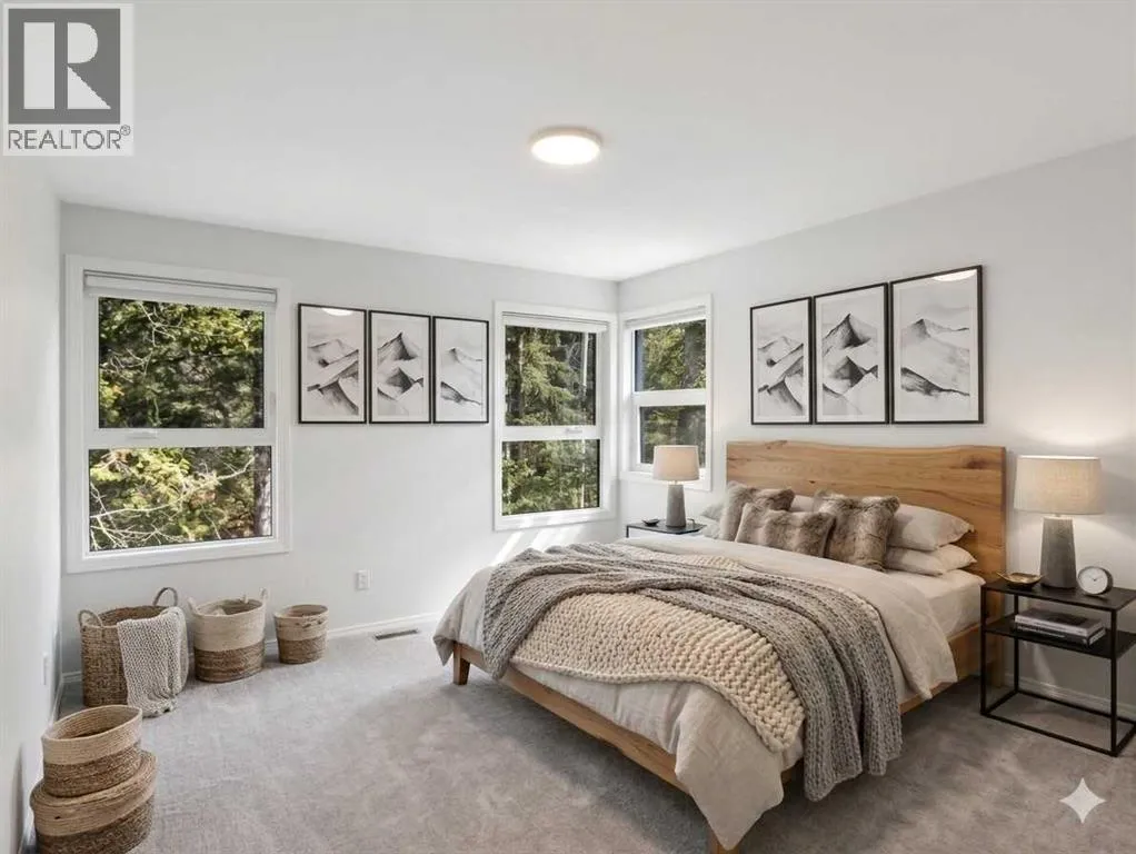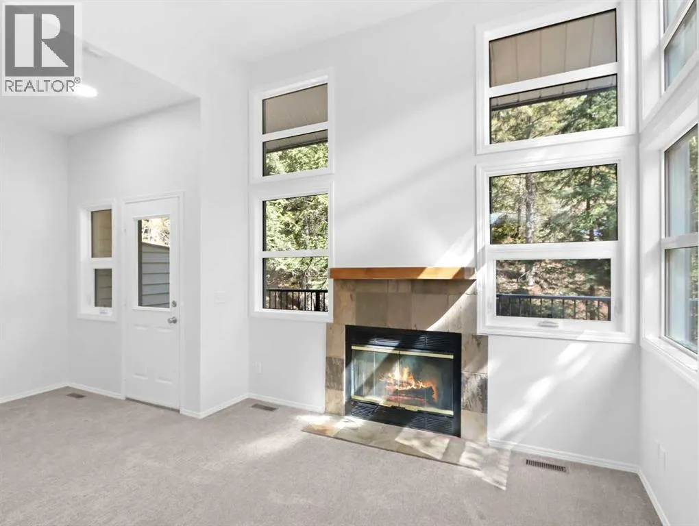 Immaculately maintained 1,574 square foot, 3-bedroom, 2.5-bath end-unit townhome in sought-after Benchlands, offering stunning mountain views, heated single garage, and two additional parking stalls. The thoughtful split-level design enhances the bright open flow and natural light throughout. The inviting living room features soaring ceilings, expansive windows, a wood-burning fireplace, and access to a large wraparound deck that enjoys a peaceful
