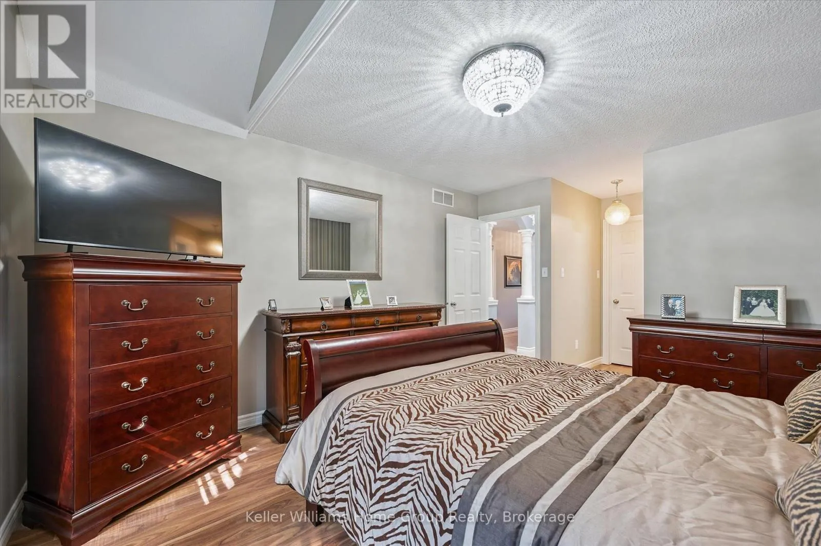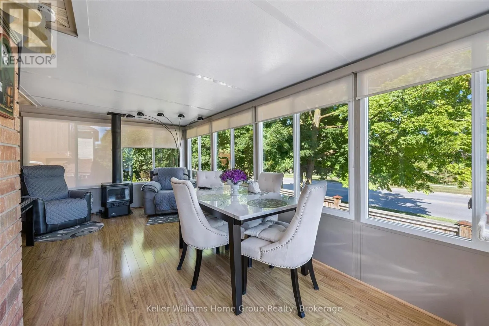 This 4-bedroom, 4-bathroom bungaloft is tucked into one of Fergus’s most loved neighbourhoods. The layout is bright and open, with a kitchen that’s made for both everyday life and entertaining granite counters, stainless steel appliances, and a breakfast bar where everyone seems to gather. One of the standout spaces is the four-season sunroom, featuring an insulated floor and cozy gas
