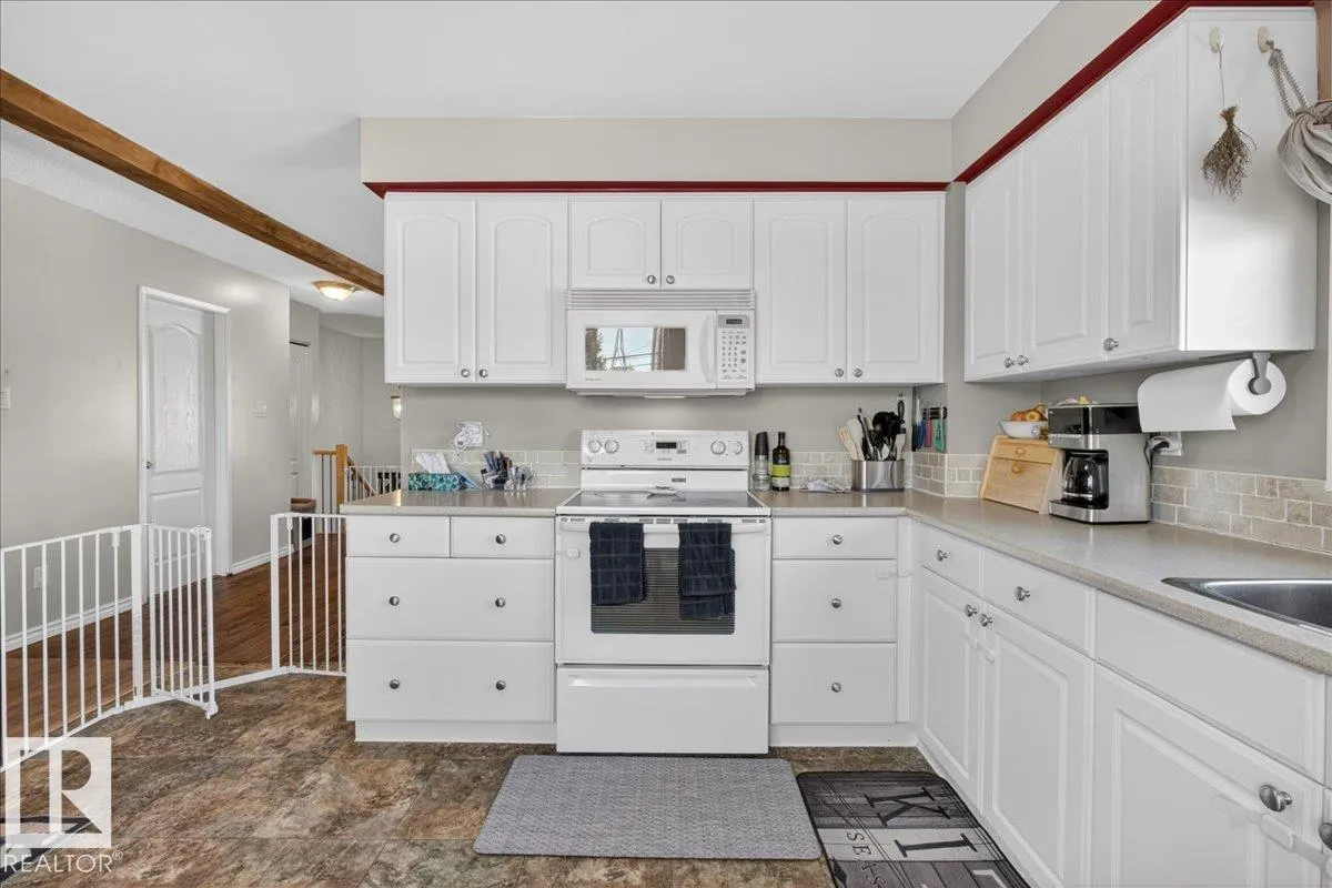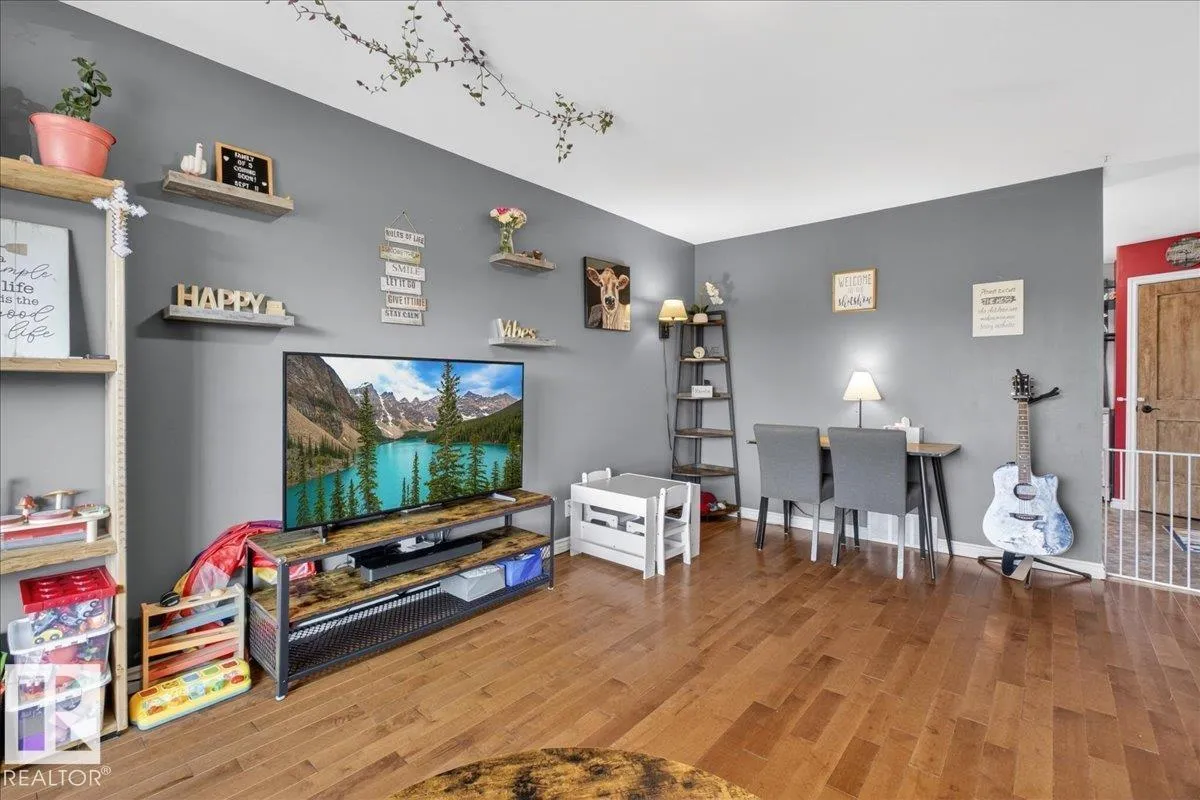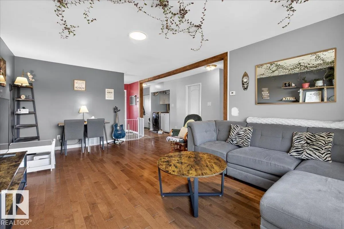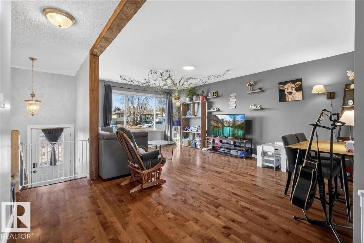Bright and functional bi-level half duplex in Spruce Grove with a detached double garage, rear lane access and a fully finished lower level. The main floor features a spacious living room with large windows that fill the home with natural light, along with a well-designed kitchen offering ample cabinetry and a pantry for extra storage. Off the kitchen, the back