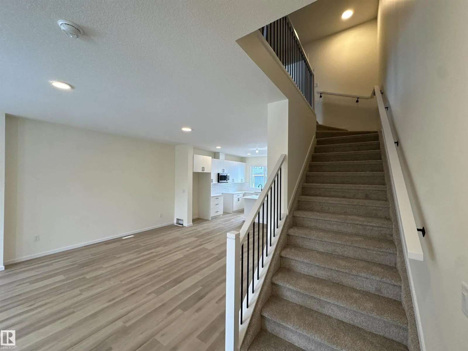 5 Things to Love About This Alquinn Home: 1) Modern Open Concept Living – Enjoy a bright main floor featuring a seamless living, dining, and kitchen space with an electric fireplace and an island with breakfast bar, plus a pantry. 2) Functional Everyday Design – Front entry closet, rear mudroom with built-in cubbies and bench, and a convenient 2-piece bath