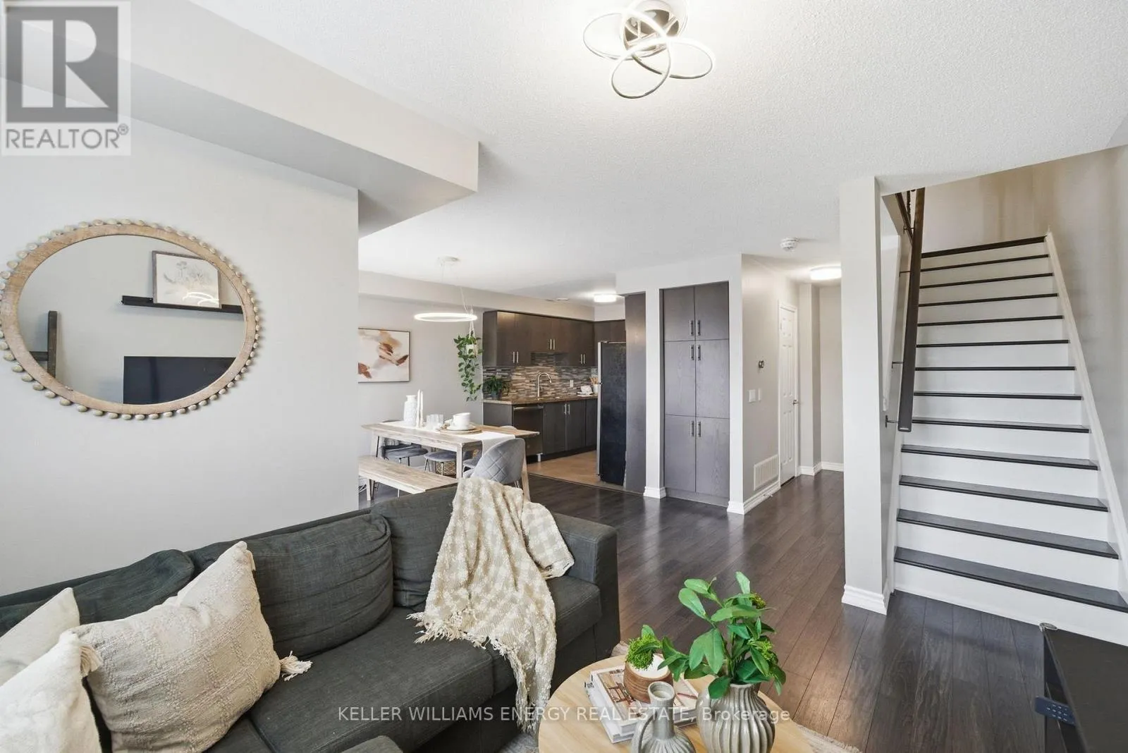 Welcome to this south-facing freehold townhome (no condo or POTL fees!) in Oshawa’s desirable Windfields community. Offering 3-car parking with a 1-car garage, this bright and well-maintained 2-bedroom home features a functional open-concept main level with a spacious living and dining area and a walk-out to a private balcony overlooking the Elmcroft Parkette. The modern kitchen is equipped with stainless