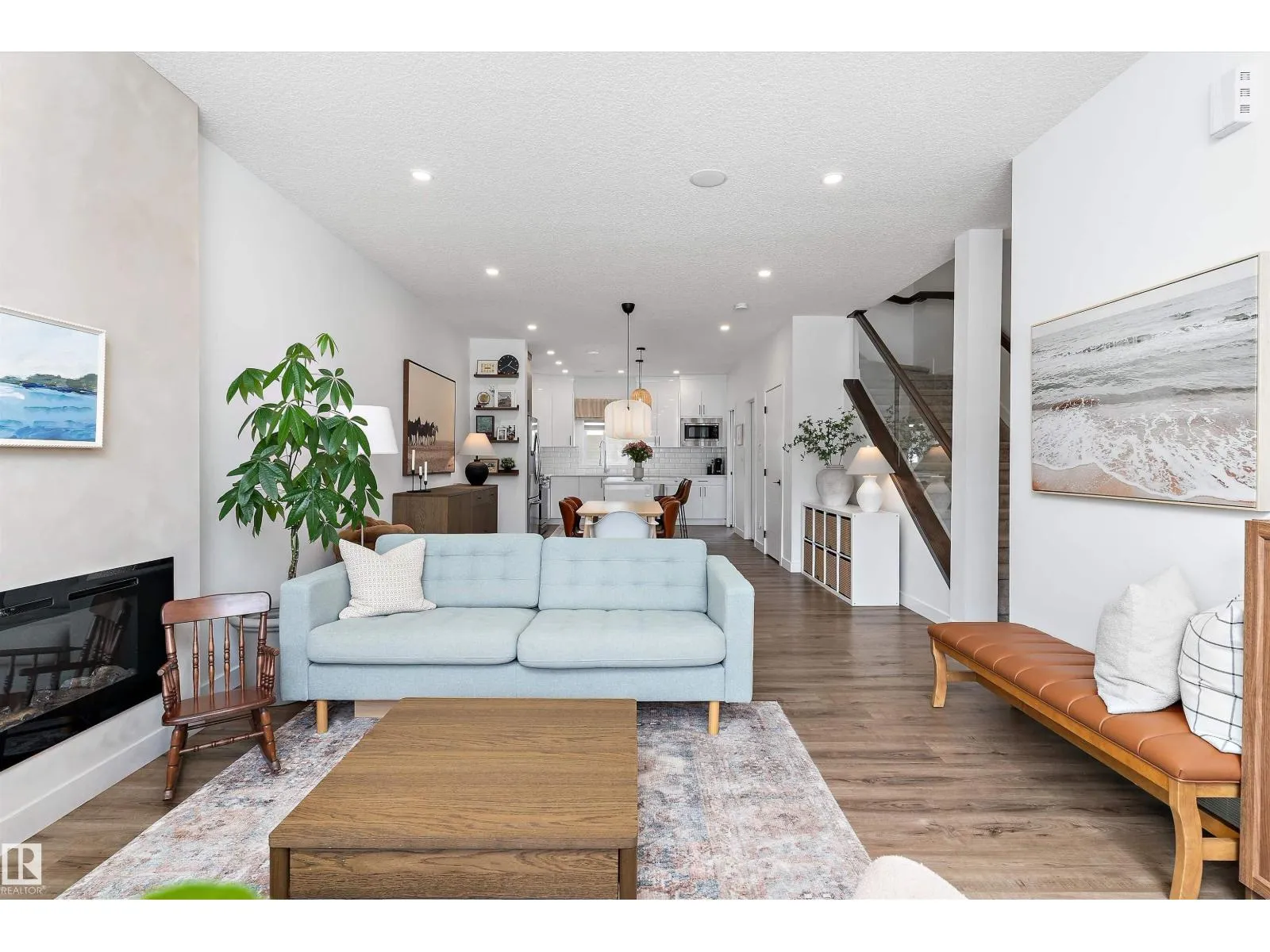 Welcome to this stylish 2-storey home in Edgemont offering 1,717 sq ft of bright, functional living space. The open-concept main floor features oversized windows, modern finishes, and a beautiful kitchen with a large island, stainless steel appliances, and seamless flow into the dining and living areas. The living room is highlighted by an electric fireplace, creating a warm and inviting