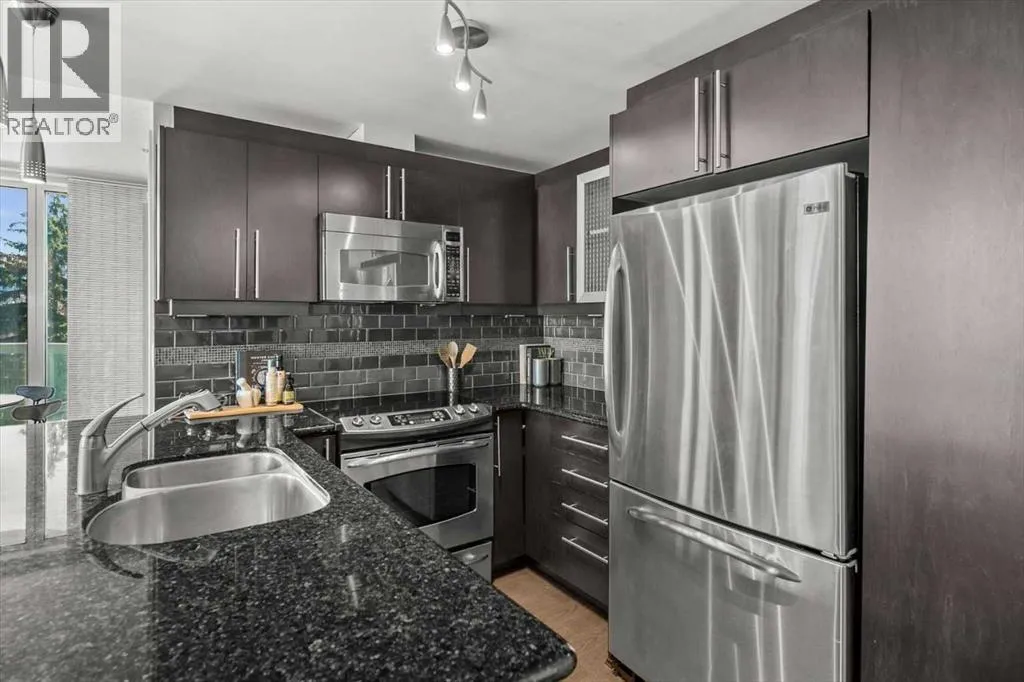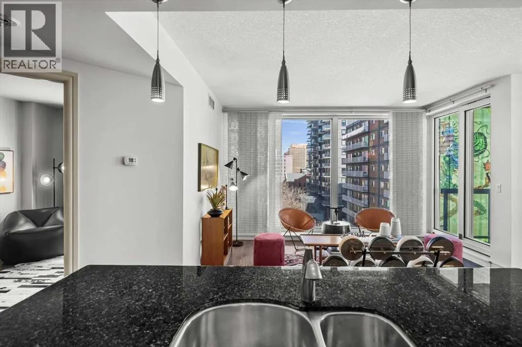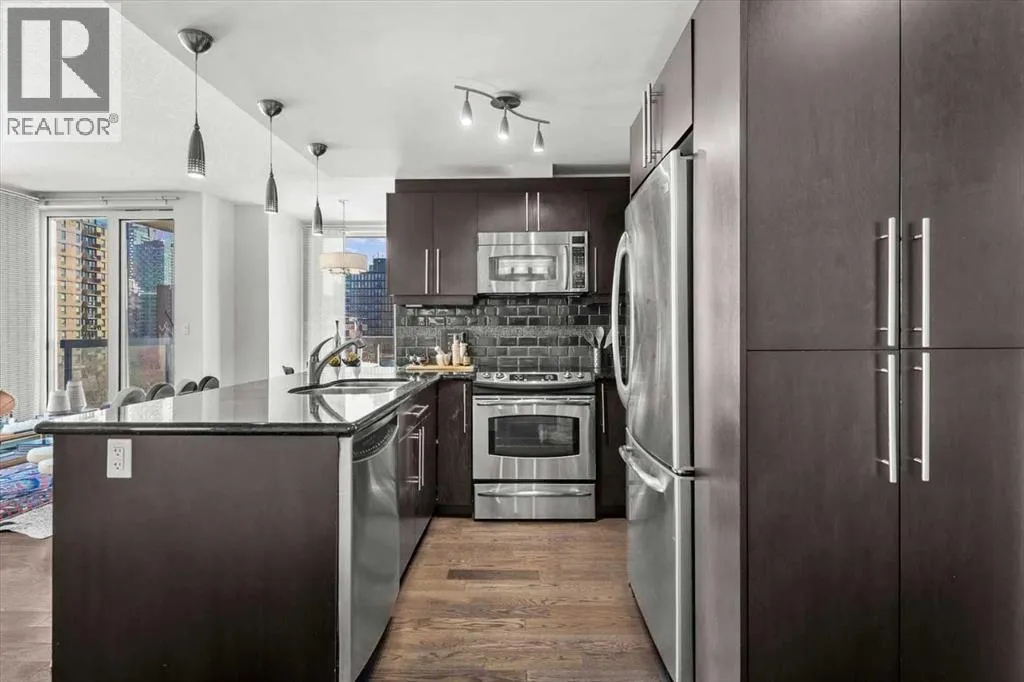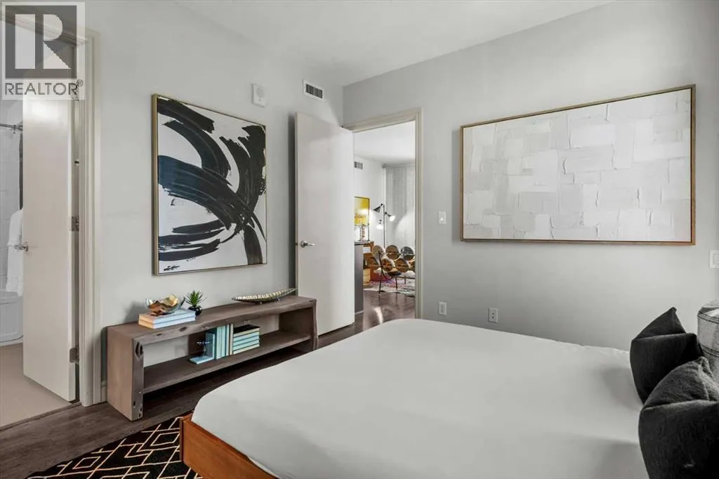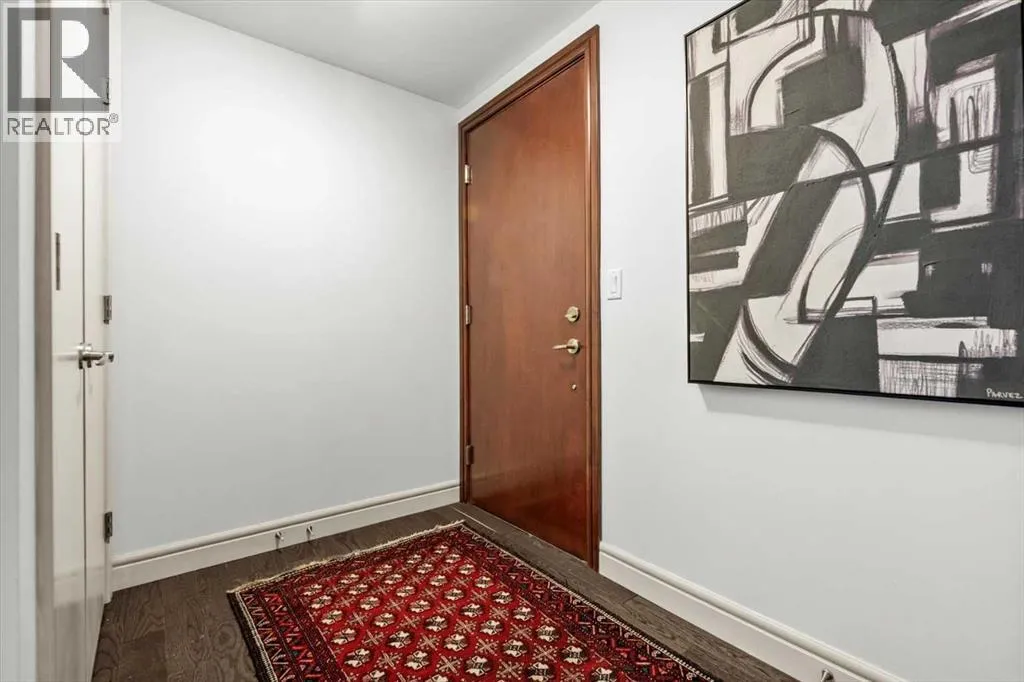 set back from the bustle of city life. Living here means embracing a truly walkable lifestyle. Start your mornings with coffee from a nearby café, pick up groceries or fresh produce just around the corner, or head to your favourite yoga studio or boutique gym, all without ever needing your car. Commuting is effortless, whether you work downtown, attend meetings across the core, or rely on nearby transit routes for easy access throughout the city. In the evenings, stroll to award-winning restaurants, lively patios, cocktail lounges, and local boutiques, then return home to a peaceful retreat elevated above the street. Inside, the open-concept layout is flooded with natural light thanks to floor-to-ceiling windows and a desirable corner orientation. Hardwood floors, central air conditioning and heating, in-suite laundry, and a thoughtful split-bedroom design create a space that feels both stylish and highly functional. The primary bedroom offers excellent privacy with a generous closet and a well-appointed ensuite, while the second bedroom and full bathroom are ideally positioned for guests, roommates, or a dedicated home office. Step onto the private balcony off the living room and enjoy your own outdoor space, complete with a gas BBQ hookup…perfect for relaxed evenings, summer grilling, or entertaining friends before heading out on 17th Ave. The home also includes titled underground parking and a separate storage locker, adding everyday convenience and peace of mind. The Montana is a standout building in Calgary’s urban landscape, known for its timeless architectural design an d quality concrete construction that provides superior soundproofing and long-term value. Residents enjoy a low-maintenance, luxury lifestyle with a 7-day concierge, a newly updated fitness centre, and condominium fees that include heat, water, insurance, and more. Beautifully maintained and move-in ready, this residence is ideal for professionals, downsizing, or urban enthusiasts seeking sophisticated downtown living without compromise. This is a home that truly complements the vibrant, connected lifestyle that downtown Calgary is known for. (id:64429)