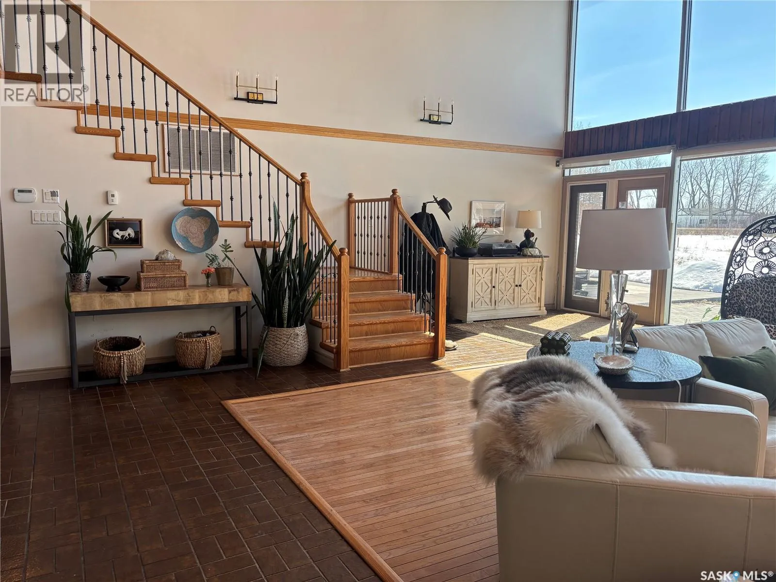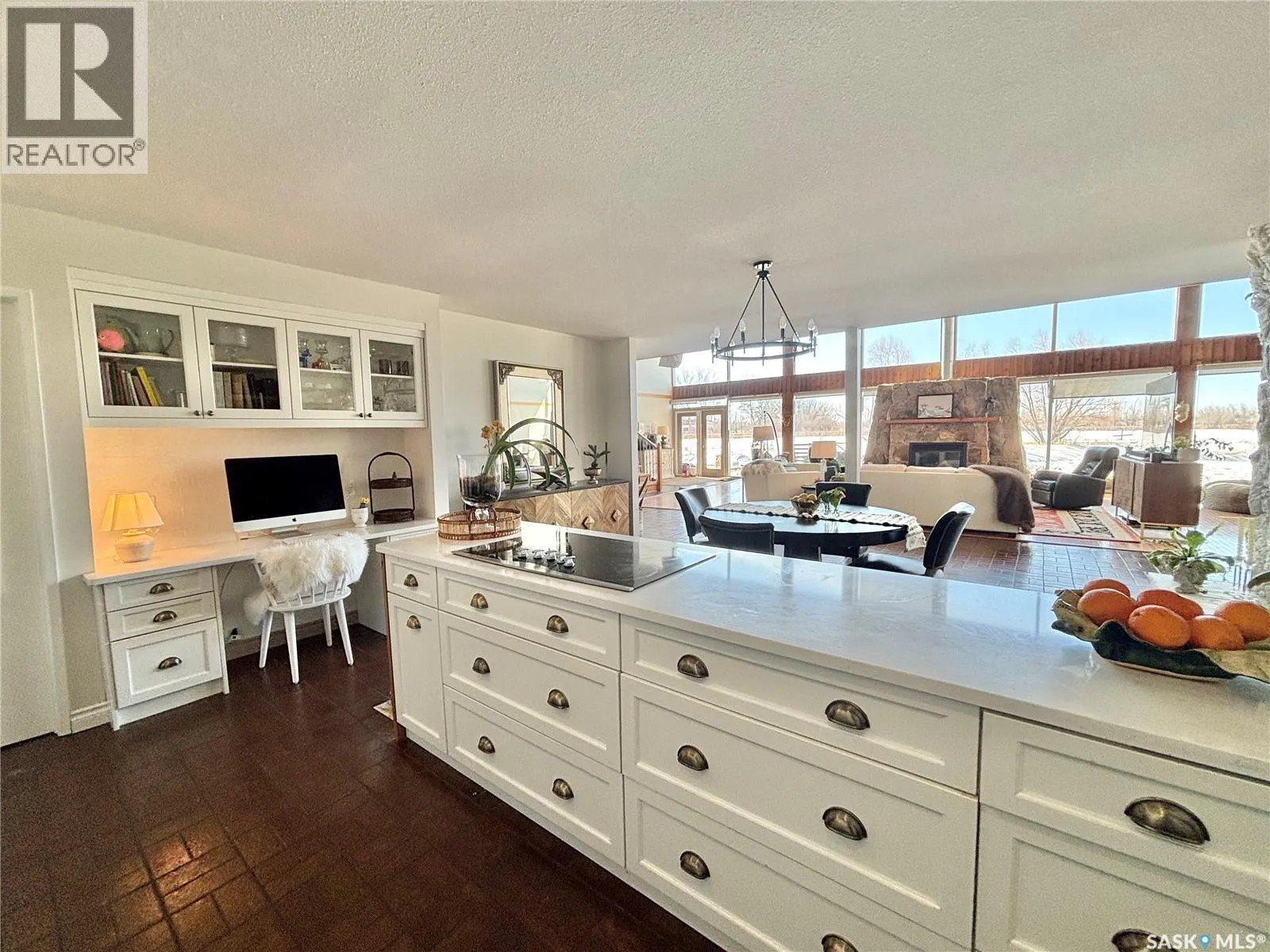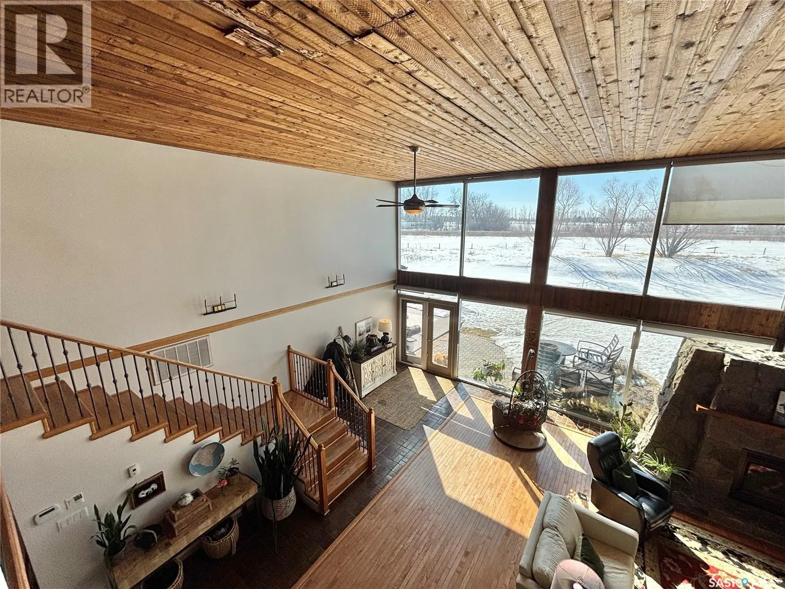 This property offers a rare combination of peaceful country living and modern amenities! Step inside to a bright, open-concept layout with soaring ceilings, expansive south-facing windows that flood the space with natural light and a welcoming feel. The living room is the heart of the home, featuring a stunning fireplace and room to create multiple spaces in one. The newly