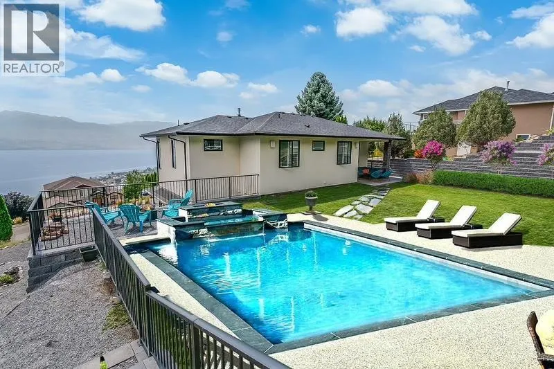 Indoor-Outdoor Living in Prestigious Lakeview Heights Minutes off the Wine Trail. This newly built custom home boasts incredible lake views and offers a unique blend of indoor and outdoor living. With 3 bedrooms, theatre room and an office in the main home and a 1 bedroom + den legal suite downstairs, this property is perfect for families with added income