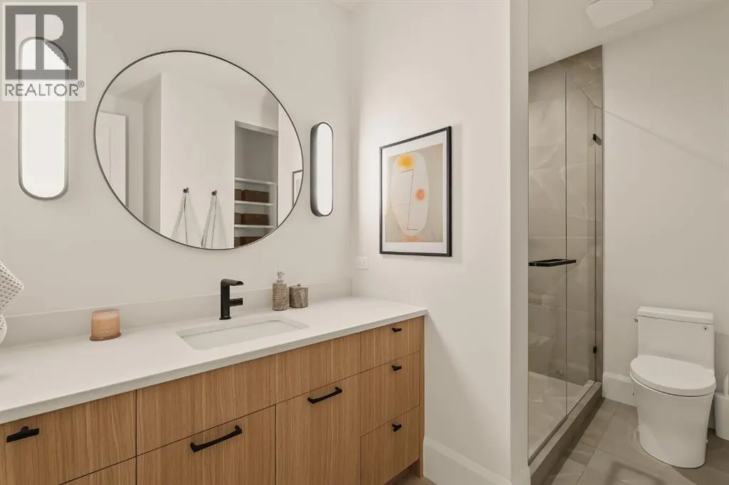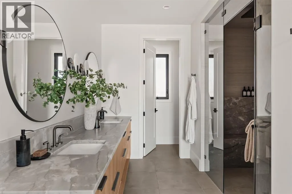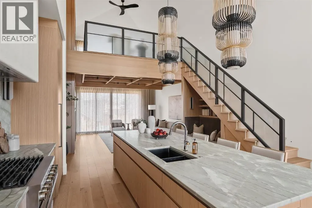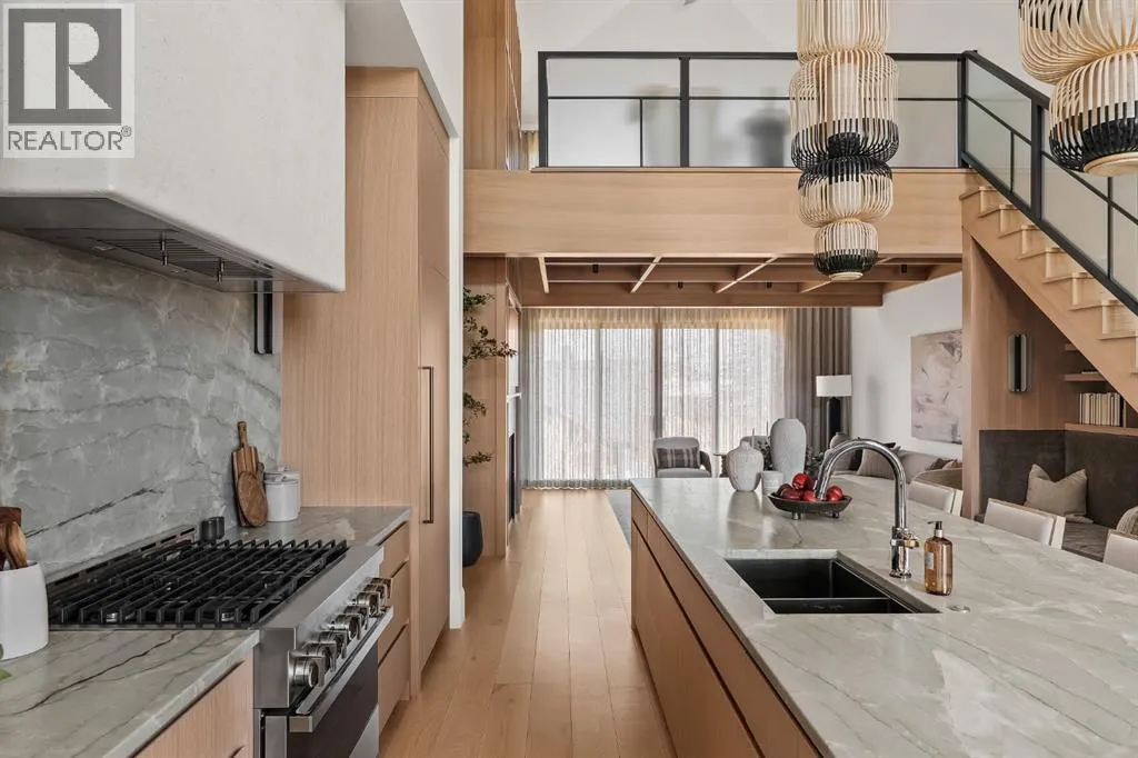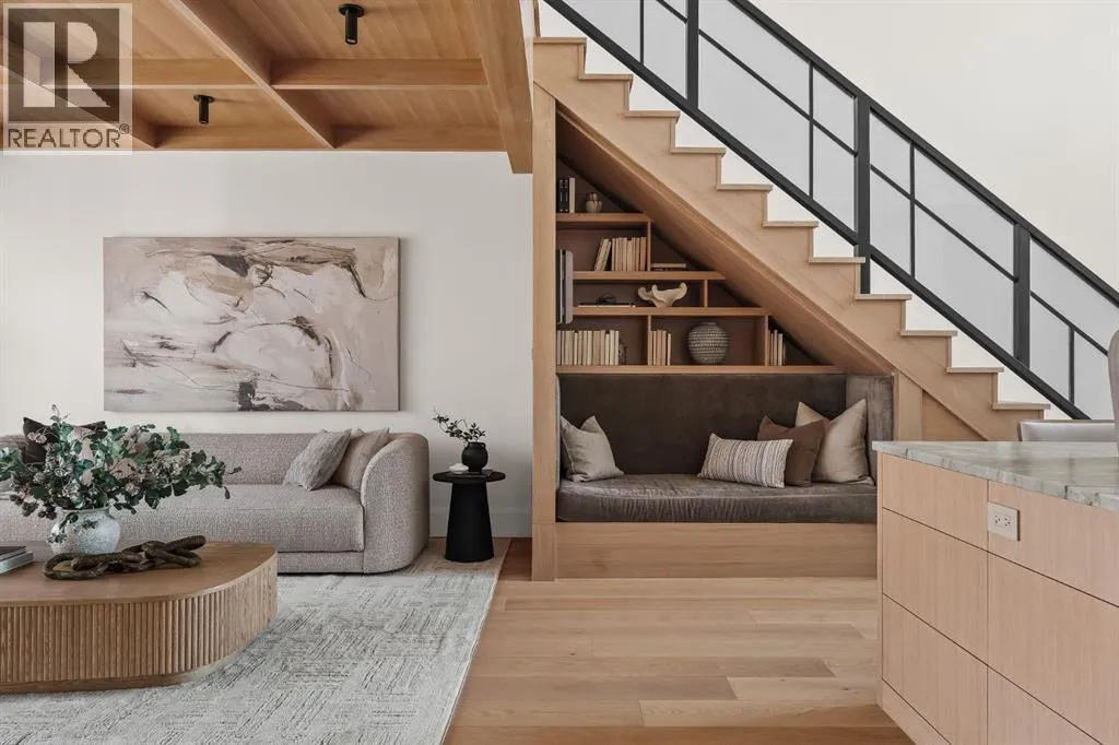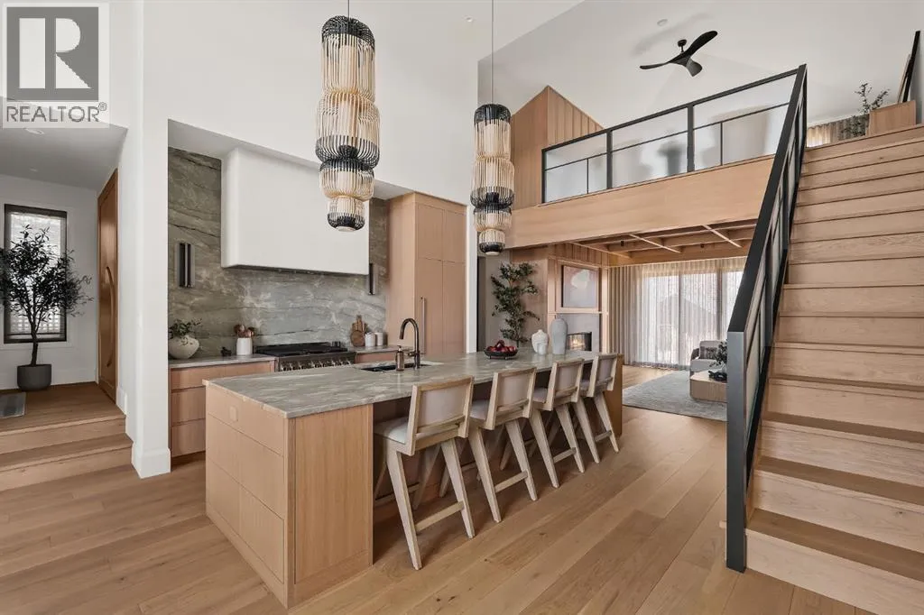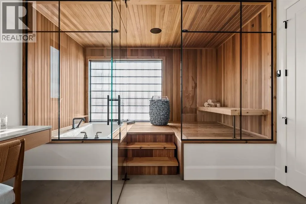 space, every detail has been carefully curated to deliver a truly elevated living experience. From the moment you arrive, the striking Japandi-inspired exterior sets the tone—blending clean architectural lines with warm natural materials including Newtech siding, Hardie Board, and limestone accents. A large front custom pivot door welcomes you into a refined interior where custom millwork, designer lighting, and seamless automation create a cohesive and sophisticated atmosphere. The main level offers over 2,600 square feet of exceptional single-level living. A huge amount of upgraded bespoke millwork is evident throughout, from integrated wall paneling to a thoughtfully designed kitchen reading nook and much more. At the heart of the home, a spectacular Town & Country gas fireplace with herringbone detailing anchors the living space—perfectly balancing comfort and statement design. The primary retreat is a private sanctuary, featuring a spa-inspired wellness experience rarely seen in residential homes. Enjoy a custom sauna and steam shower, complemented by a luxurious plunge bath—creating a daily escape reminiscent of a five-star resort. A unique upper loft provides a versatile space for a home office, studio, or quiet retreat, while the huge fully developed lower level offers an entirely self-contained living environment. With three spacious bedrooms—each complete with their own bathroom and walk-in closets. This level is ideal for extended family, guests, or multi-generational living. The outdoor setting is equally impressive. The expansi ve backyard has been professionally landscaped into a private oasis, complete with a sunken fire pit lounge, covered patio with heaters and retractable screens, and a sport court—perfect for both entertaining and everyday enjoyment. At the rear, a triple detached garage is paired with a fully developed loft space above, currently designed as a private gym, adding yet another layer of flexibility and function. Additional features include luxury custom window coverings, an elevated lighting package, and full smart home integration with Lutron automation for effortless control of lighting and ambiance. This is a rare and distinguished offering—where the craftsmanship of Trickle Creek Custom Homes meets inspired design in one of Calgary’s most prestigious inner-city communities. Want a turnkey experience? Immediate possession available and all furnishings are negotiable. Don’t miss this one! (id:62650)