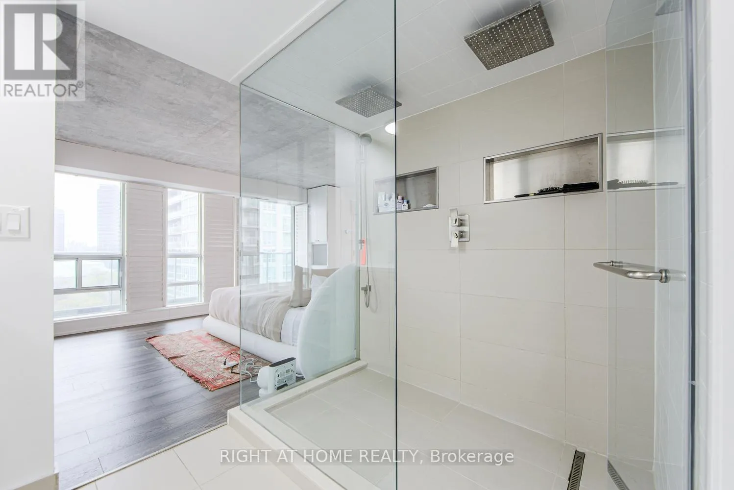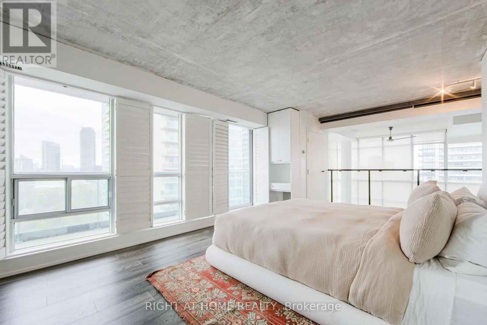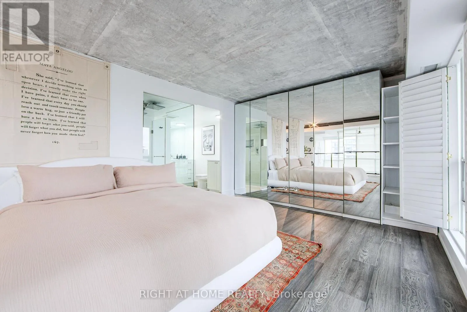 Welcome to Mystic Pointe lofts in Mimico! This converted distillery warehouse offers a sophisticated living experience. A corner unit boasting 2+1 bedrooms, 2 bathrooms, 17 ft high ceilings and 1210 sq ft of open space, this residence features unique architectural elements. The second-floor primary suite, includes a spa-inspired ensuite, open concept den, and main floor gourmet kitchen with built in