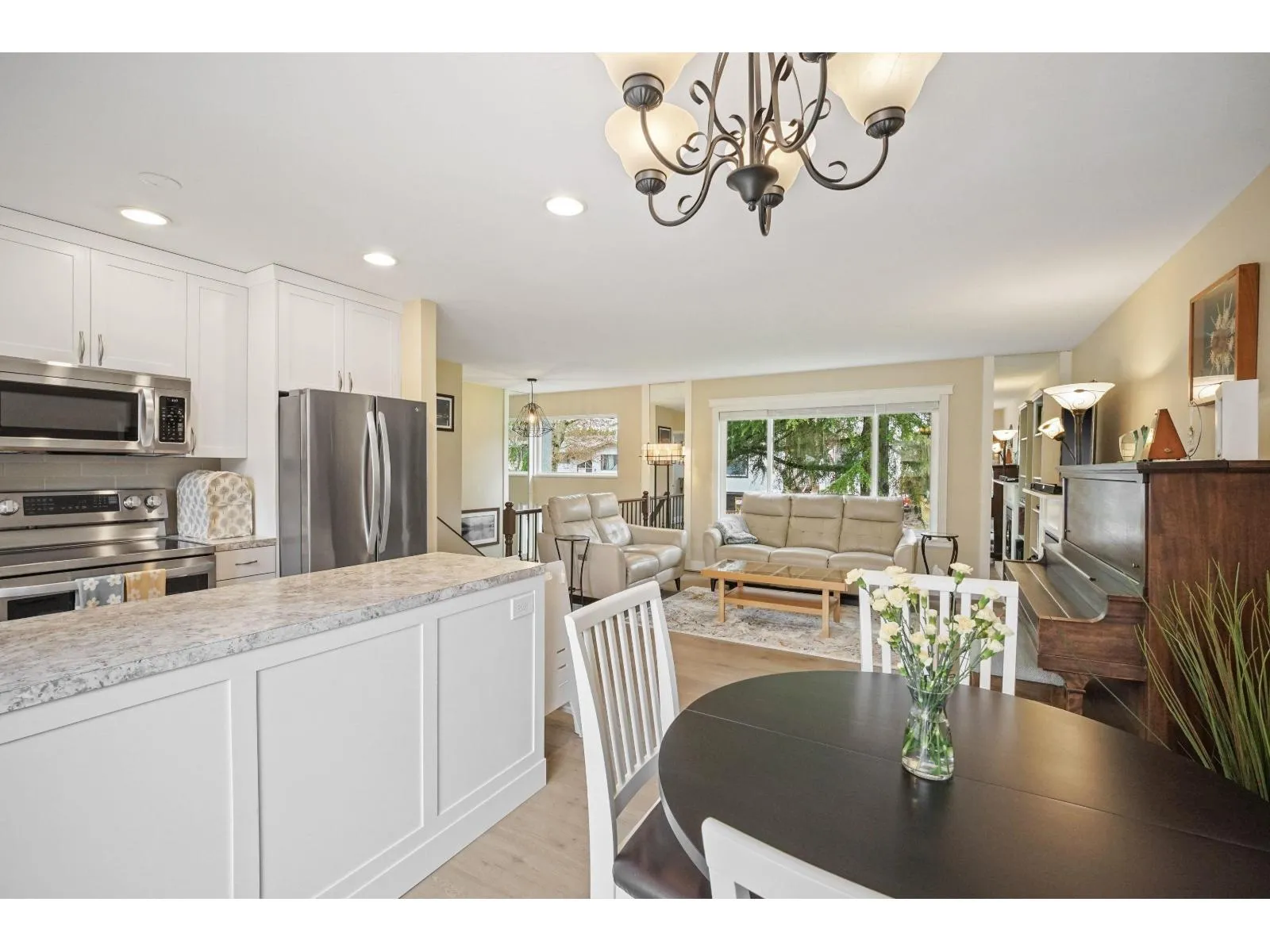 IMMACULATE BSMT home features Detached 19’3 x 28’9 Insulated Garage w/car-lift ready 6″ slab, 60-amp panel, 115V, 15 & 20 amp outlets, (3) 240V outlets & LED lighting. Plus 11’6 x 23’2 garage & RV Parking. Newer wide-plank engineered hardwood, carpet/underlay, furnace & HW tank, gutters w/leaf guards & 125 service elec panel. Main offers open-concept living w/2Bdrms up &