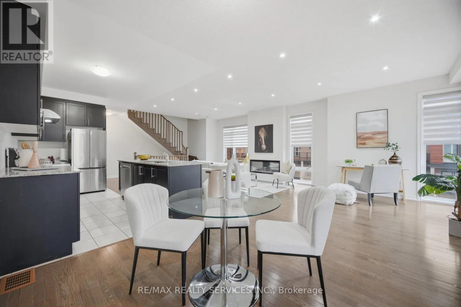 Absolutely Stunning !!! Freehold Corner Townhouse .4 Bedrooms 3 Washroom . Modern Look with Lots of Big Windows for Natural Light . Living Room On Ground Floor Can be used as Home Office .Open Concept Upgraded Eat In Kitchen . Great Room with Dining Area & Gorgeous Electric built in Fireplace ### Pot Lights ### Access to Balcony . Primary