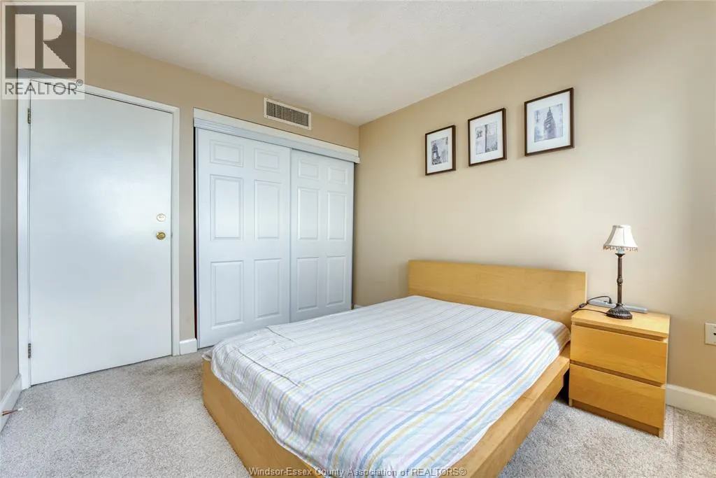Upper-level corner unit, beautifully updated and move-in ready! This bright and spacious suite features 2 bedrooms and 2 full bathrooms, including a private ensuite. The functional eat-in kitchen offers classic oak cabinetry, included appliances, and the added bonus of a rare window, filling the space with natural light and showcasing stunning views of the Detroit River and skyline. The unit