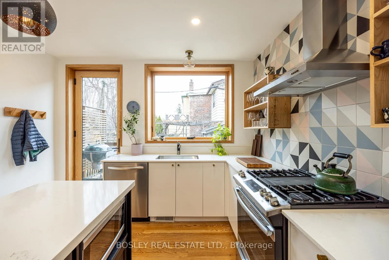 Welcome to 45 Greenlaw, a fabulous 3-bedroom end-of-row home offering the feel of a semi-detached with an abundance of natural light. At the heart of the home is a stunning Scandinavian-inspired kitchen renovation, featuring a dramatic oversized glass door and expansive rear window overlooking the backyard. Eastern morning light pours into the space, while southern exposure brightens the dining area,