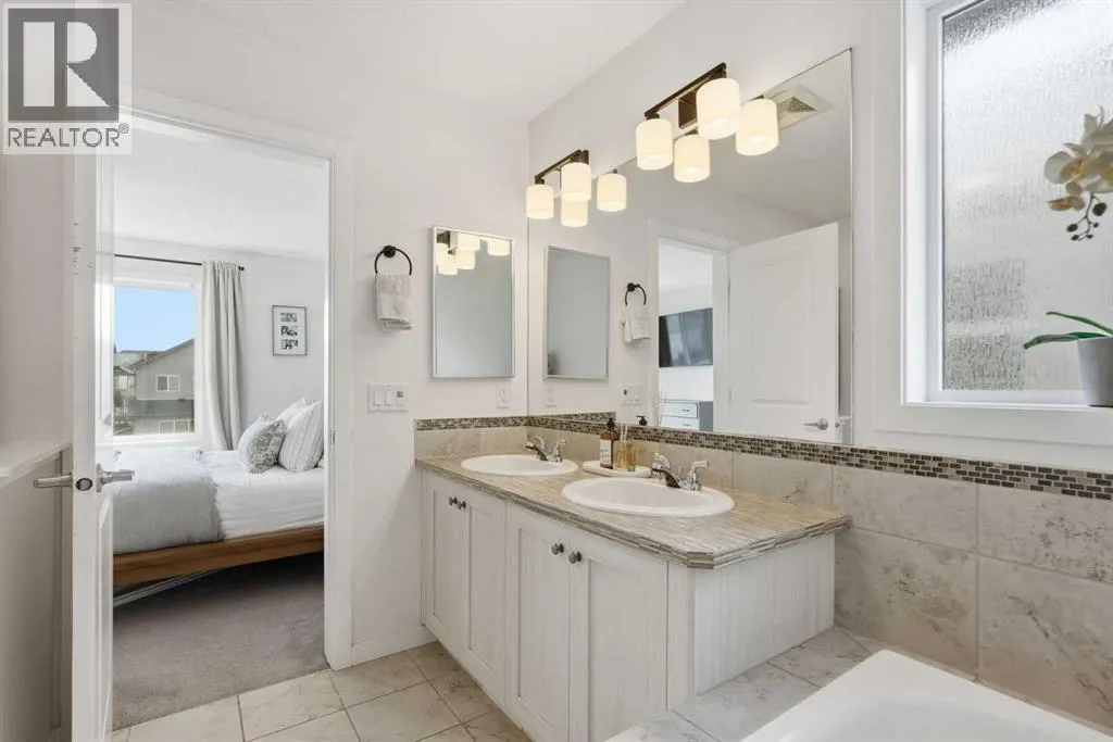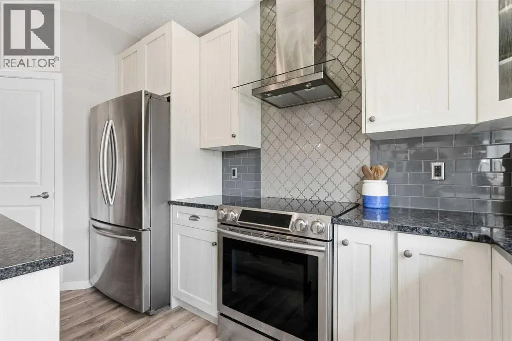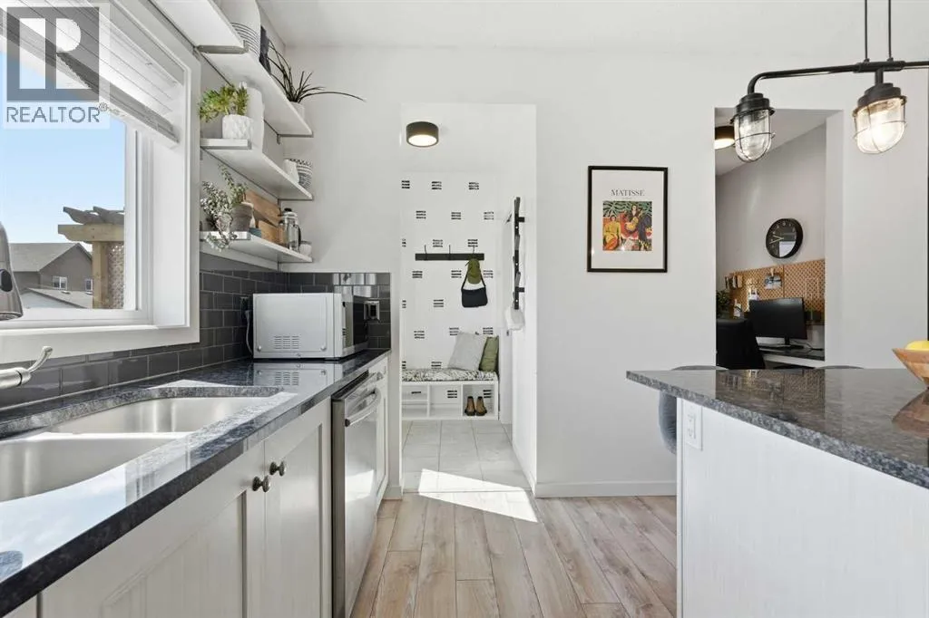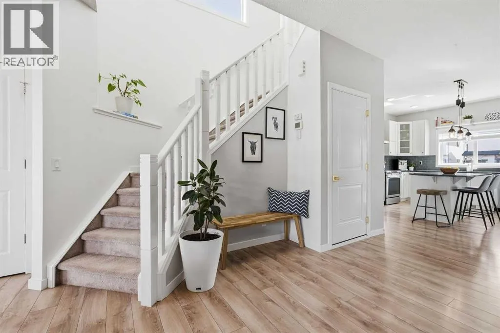 Welcome to this stunning AIR CONDITIONED 2-storey home with modern curb appeal and a FULLY LEGAL BASEMENT SUITE! The open-concept main floor features laminate flooring, a stylish dining area with FEATURE WALL, and a BRIGHT kitchen complete with white cabinetry, Samsung stainless steel appliances, designer backsplash, GRANITE countertops, and a large island with seating. A tucked-away nook offers the