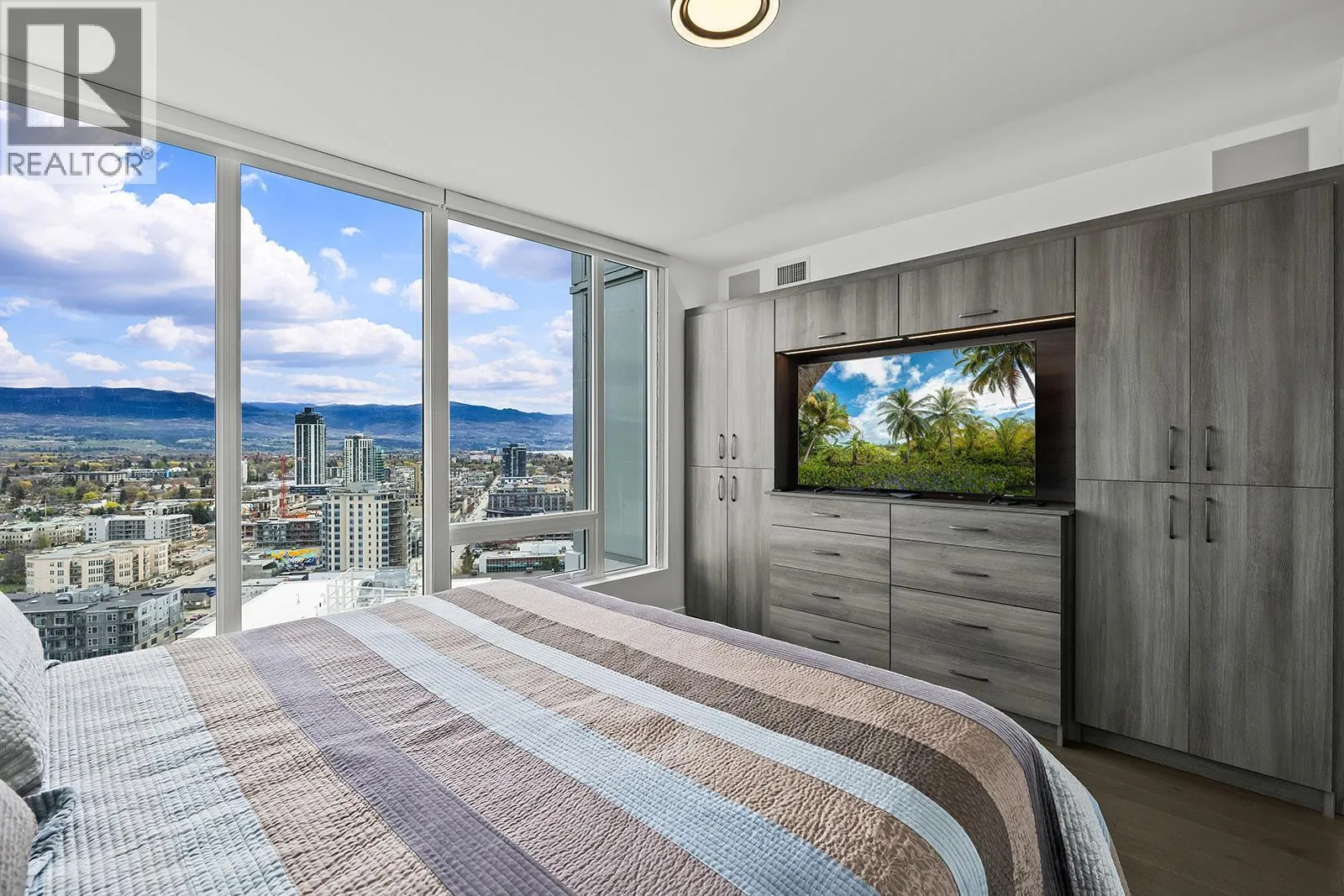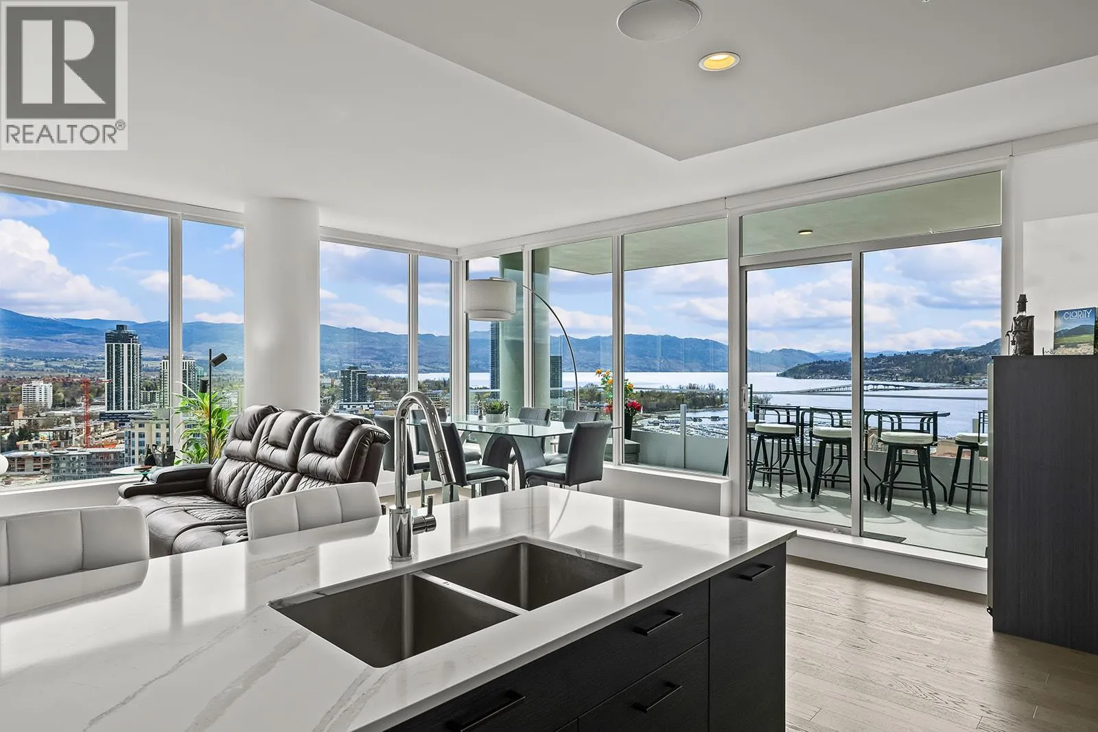 Experience elevated living in this stunning 21st floor residence at One Water Street, offering approximately $40,000 in thoughtful upgrades and sweeping views over the city. Perched above downtown Kelowna, this home captures exceptional lake, mountain, yacht club, and bridge views, creating a truly impressive backdrop both day and night. Plus the large deck is an extension of the home with