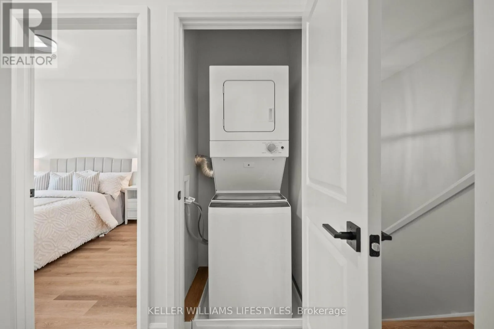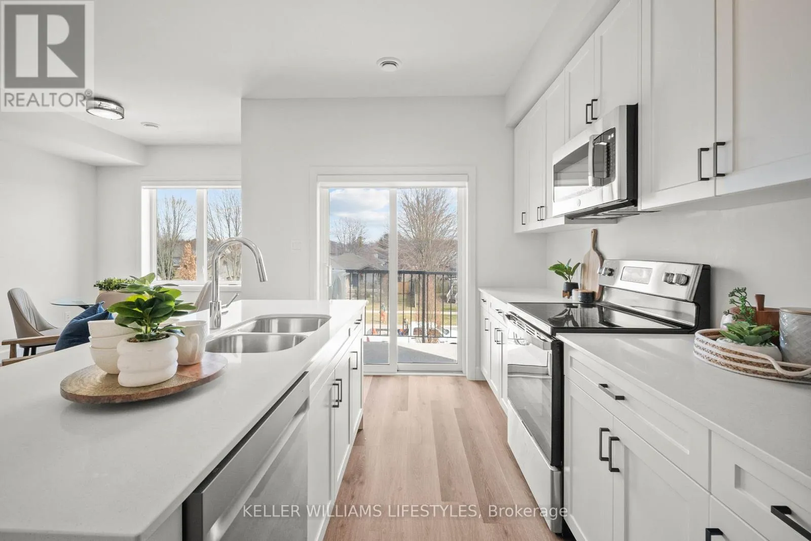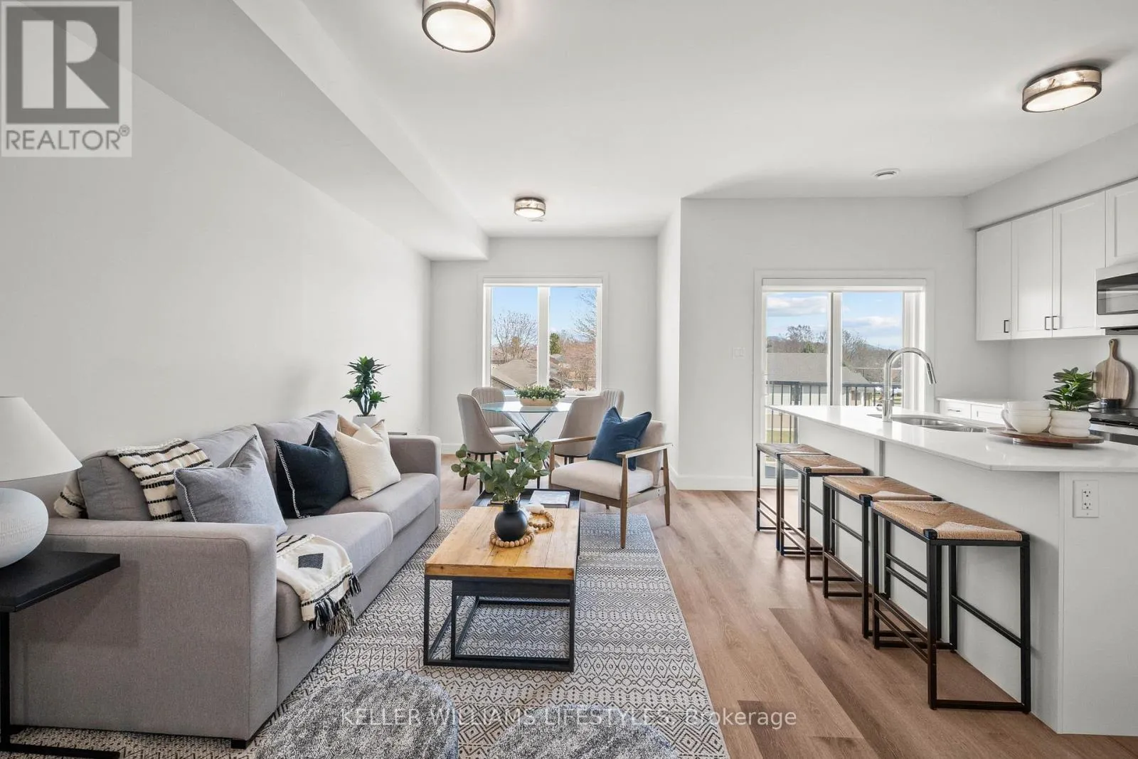 Experience effortless and stylish two-level living in The Caradoc, a 900+ sq. ft. home designed for modern comfort at Darcy Commons. This two-bedroom, one-bathroom unit features a private exterior entrance and a functional layout with no shared interior common spaces. The kitchen serves as the heart of the home, boasting a center island, quartz countertops, stainless steel appliances, and premium