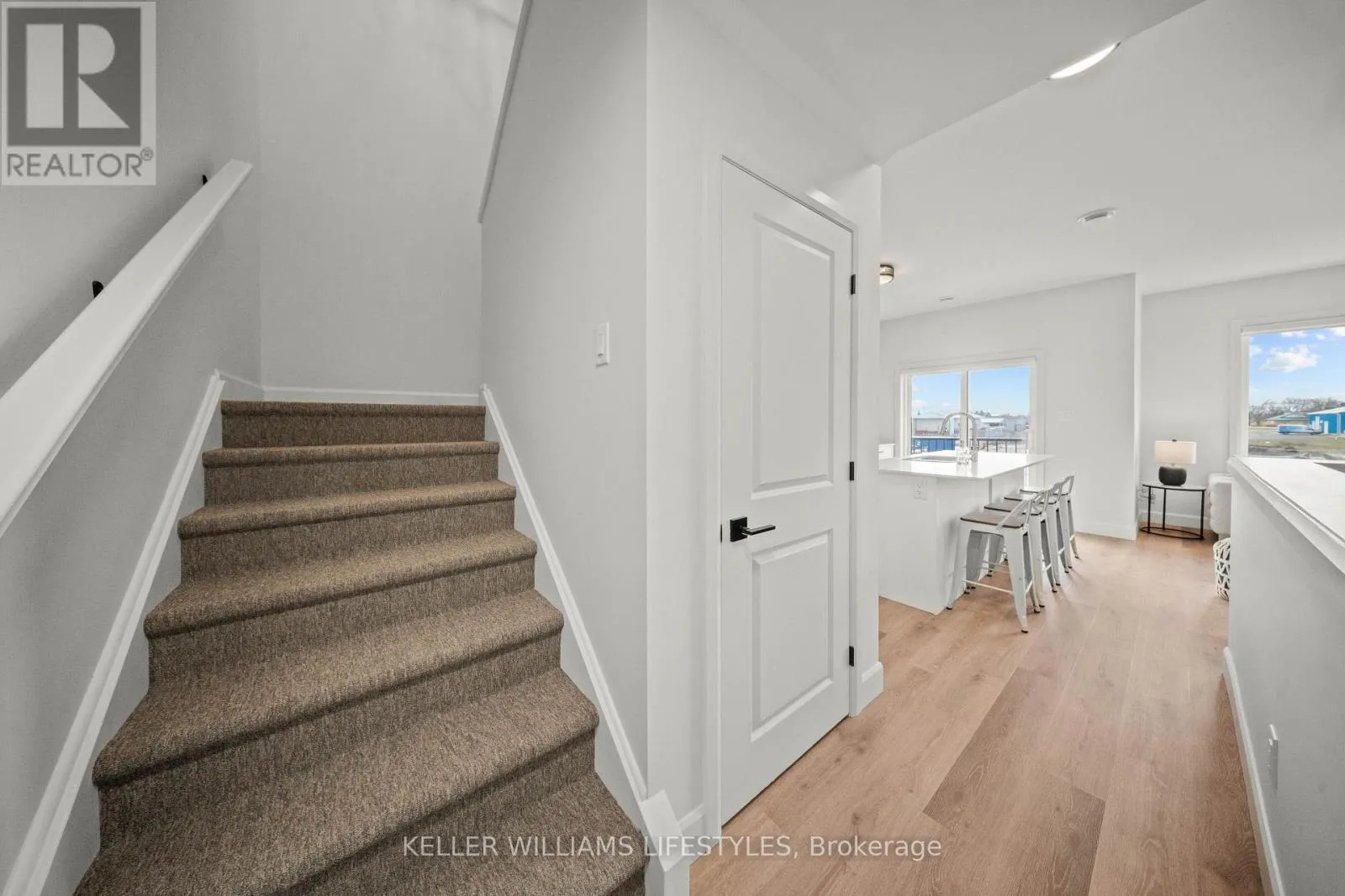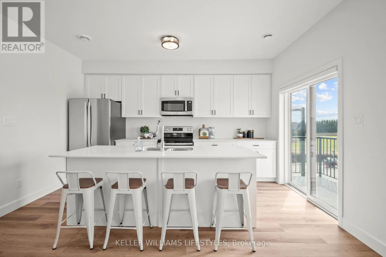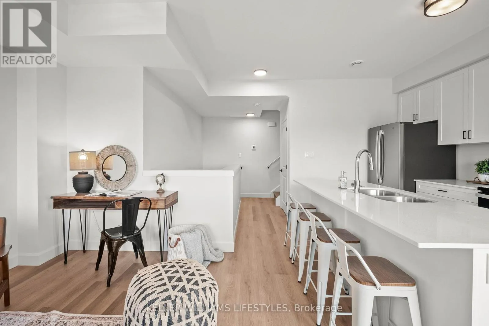 Elevate your lifestyle in The Gemini, an impressive 850 sq. ft. two-level unit within the premier Darcy Commons community in Strathroy. This two-bedroom, one-bathroom townhouse features a private exterior entrance up one flight of stairs, ensuring a quiet residence with no shared hallways. The bright interior is highlighted by luxury flooring, quartz countertops, and a spacious kitchen with a center