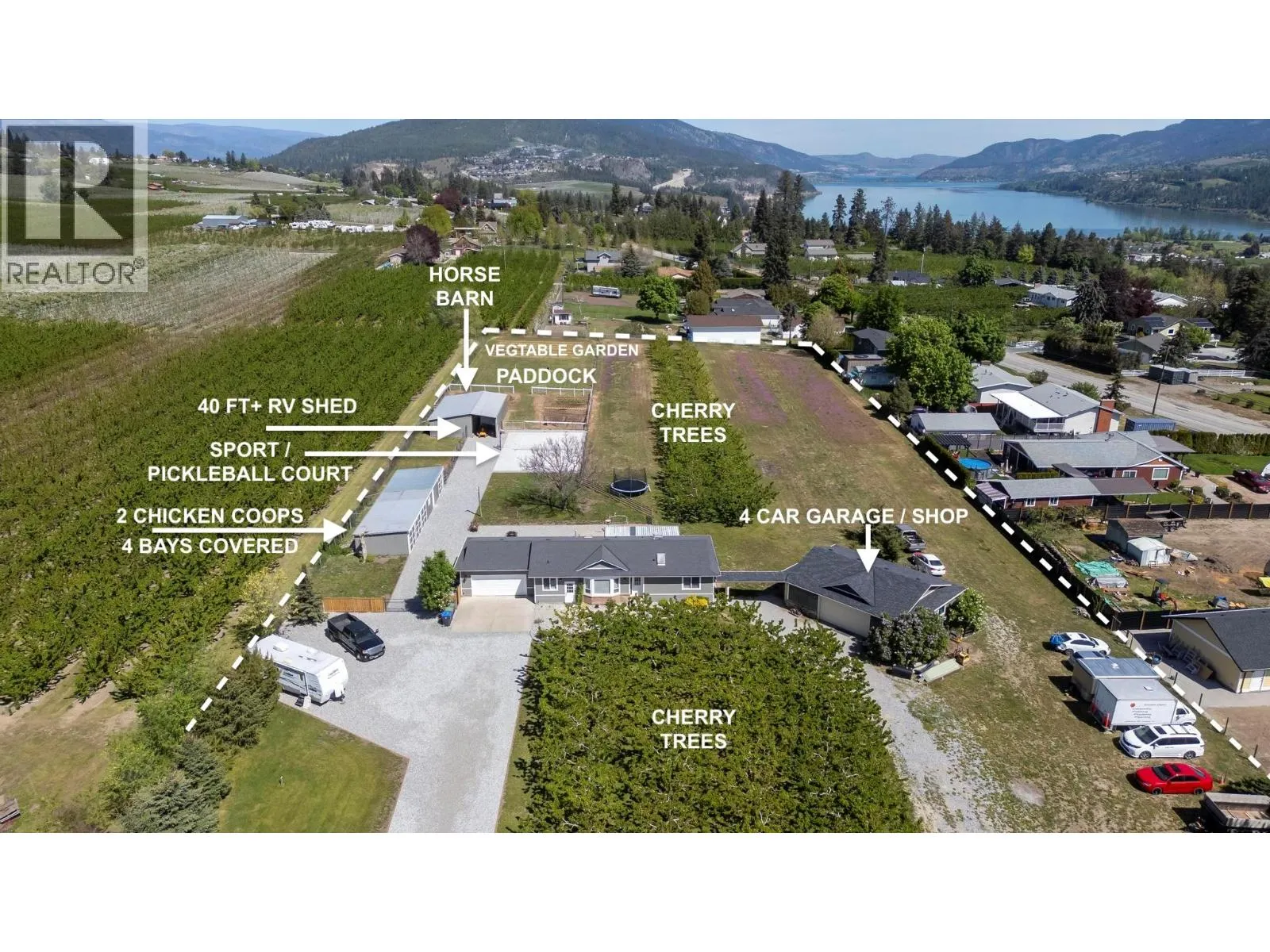 Ever want a ‘NEW’ home on a Cherry Farm? How about a horse ranch? Agri-tourism maybe? Bed and Breakfast? This property can fulfill all of those dreams and more! Now selling this freshly renovated ($400K) open concept 3+ Bedroom rancher plus basement with double driveway, 2 car attached garage and newer 4 car shop, plus 2 large outbuildings set-up for
