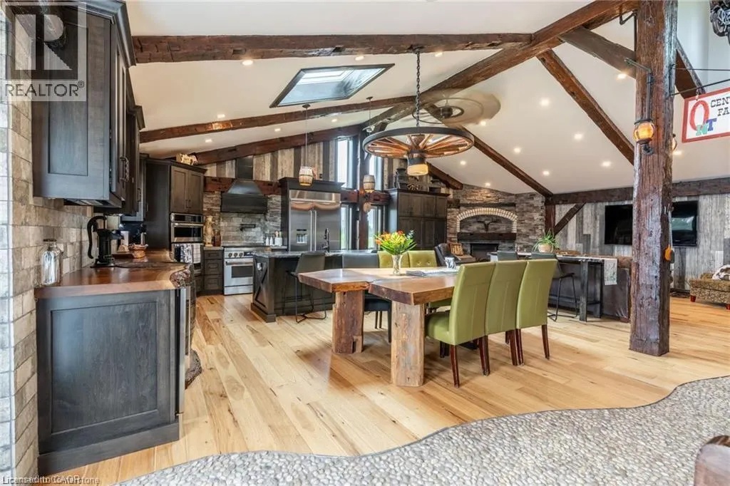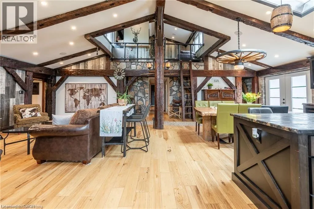 This Ranch style detached home in Flamborough, Hamilton has it all! 3 bedroom, 2 bathroom, 2200+ sqft of finished living space includes a built-in Sauna, Tanning Bed, Tiki Bar, live each day like you’re at a resort. Featuring top quality custom upgrades throughout the home including a state of the art kitchen with high end appliances. Beautiful exposed barn beams,