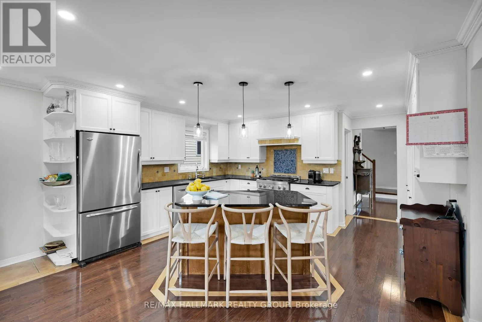 Well-maintained 3+2 bedroom, 3.5 bathroom detached home with 2,282 sq ft plus finished basement, double garage, and bright corner lot with landscaped yard and screened-in porch in Hunt Club Park/Greenboro. Hardwood throughout main and upper levels. Functional layout with spacious living and dining areas and updated kitchen featuring stainless steel appliances, black quartz counters, white cabinetry, and large island. Extra-large