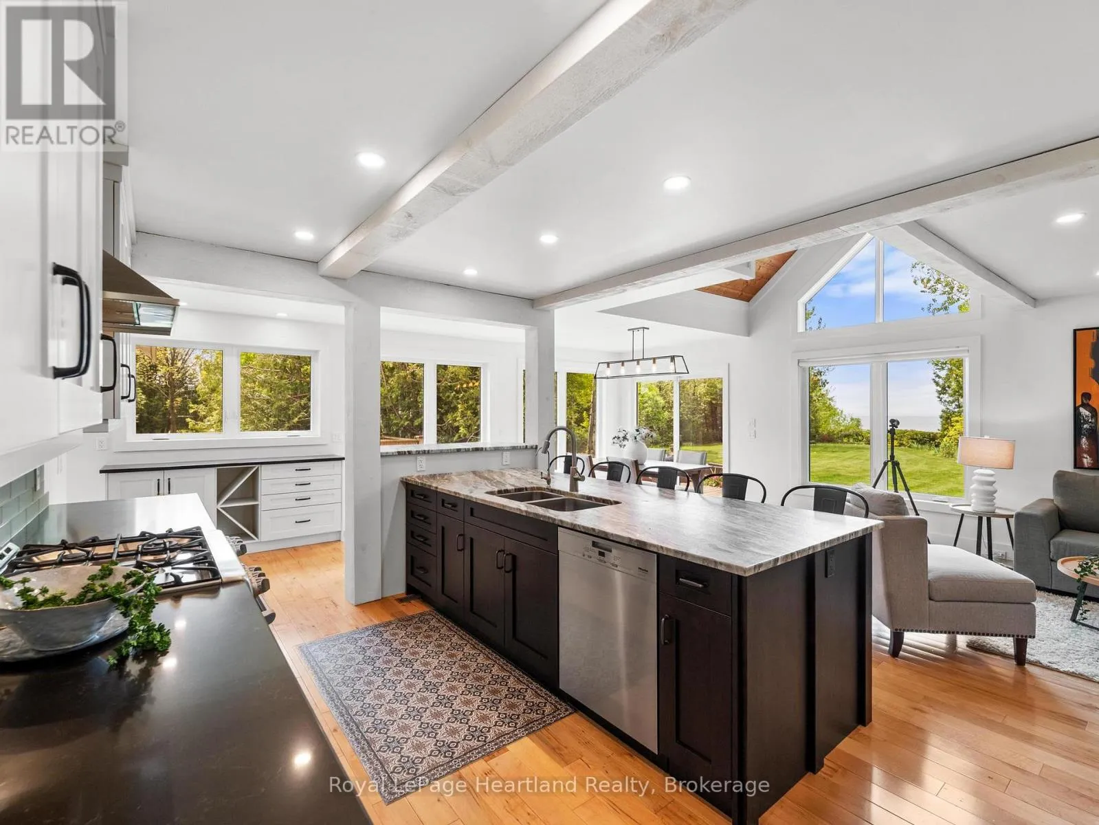 LUXURY. PRIVACY. WATERFRONT. Welcome to a truly distinguished Lake Huron estate set on 1.4 acres across two separately deeded lots, offering an extraordinary blend of prestige, privacy, and shoreline beauty. This impeccably appointed 3-bedroom, 3-bathroom residence showcases upscale finishes, sophisticated design, and geothermal heating and cooling for seamless year-round comfort.Created with entertaining and elevated daily living in mind, the home