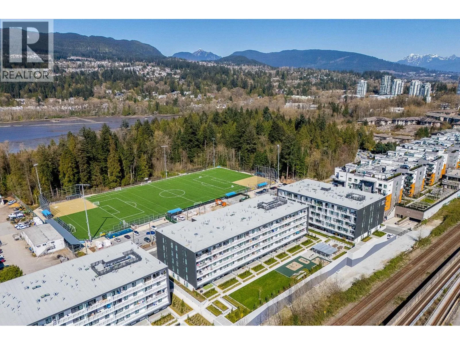 Brand New, TOP FLOOR 2 bed, 2 bath home at Moody Yards by Mosaic in the heart of Port Moody with WATER and MOUNTAIN VIEWS! This stunning Hemlock Plan with 9’ft ceilings and oversized windows, features a bright and spacious open concept layout with designer kitchen (quartz counters, SS appliances + contemporary cabinets in Rich Navy) + extra large covered balcony. Large