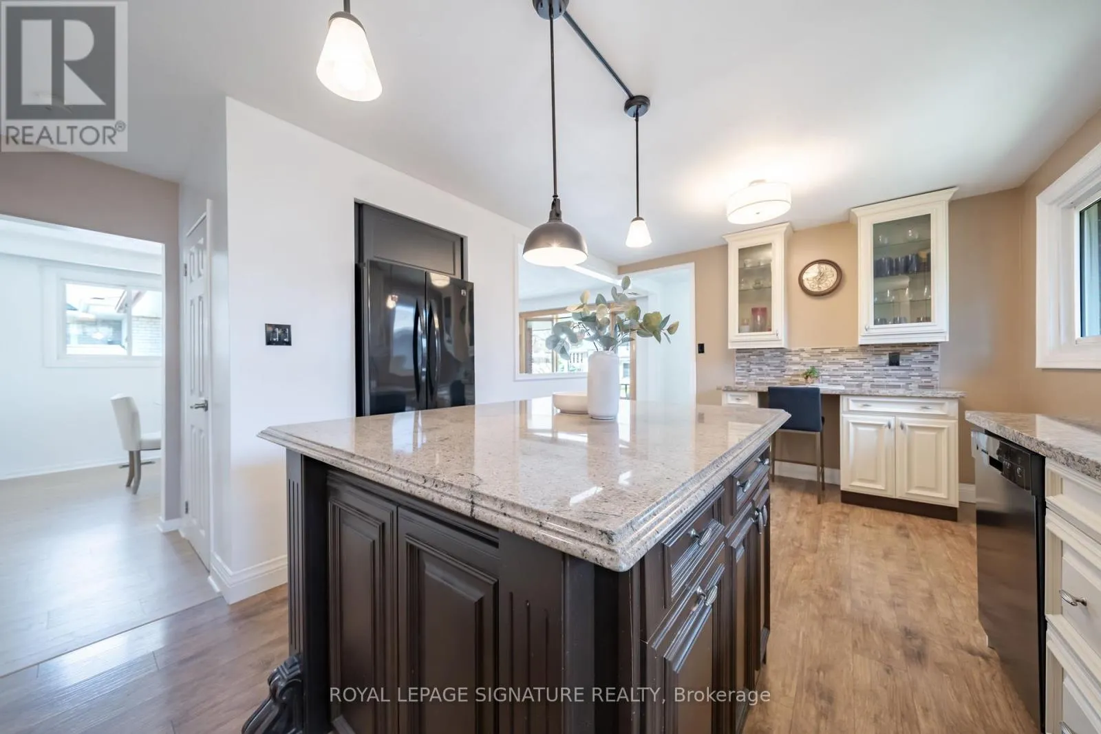 This beautifully updated all-brick 4-level back split is set on a 50 x 125 ft lot in the heart of Clarkson, offering a seamless blend of timeless construction, modern upgrades, and exceptional living space on a quiet, family-friendly street. Step inside to a bright, open-concept main floor featuring expansive living and dining areas, enhanced by new wide plank flooring and