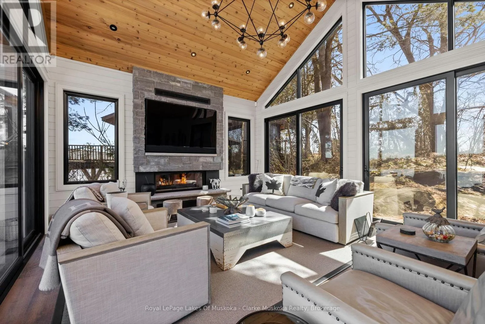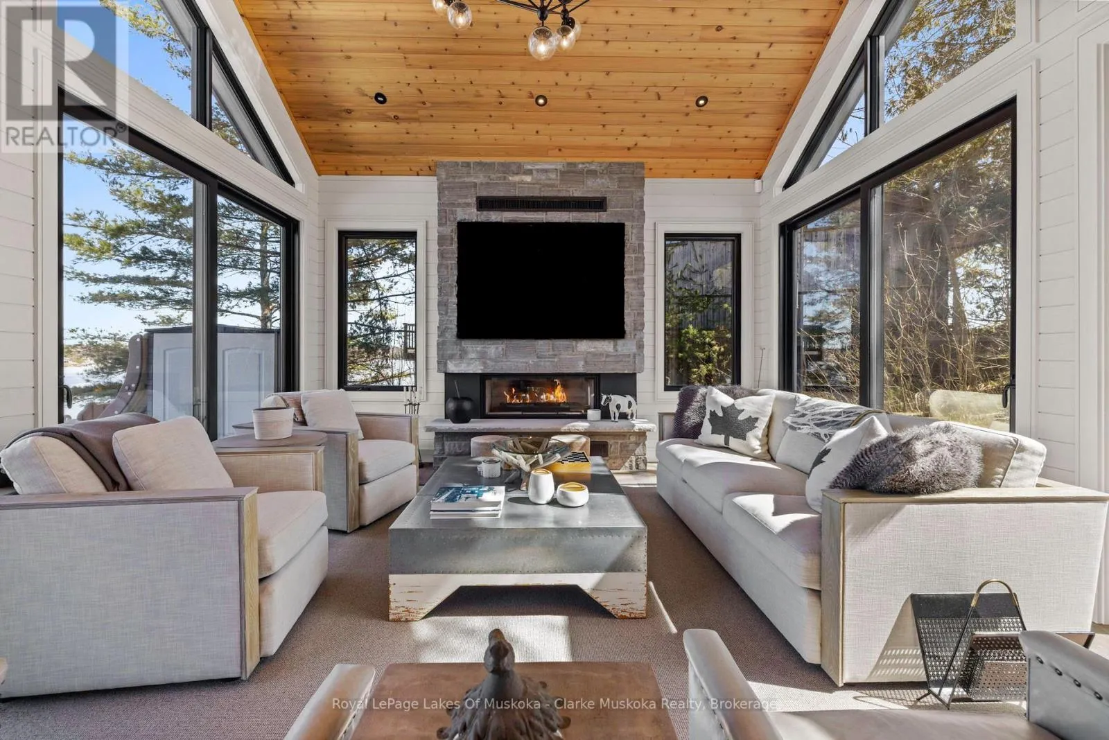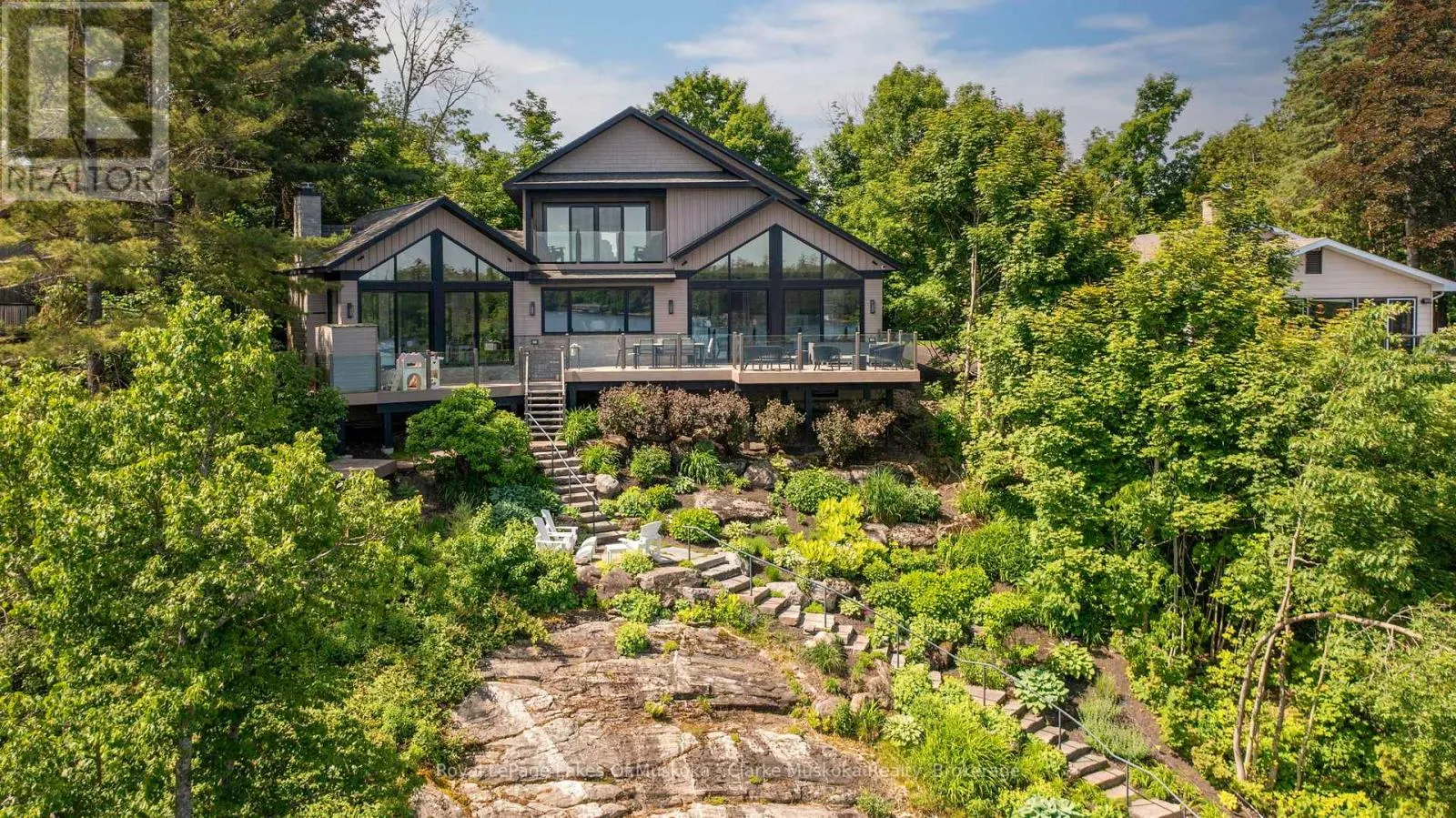 Experience the best of lakeside living on beautiful Lake Muskoka with this fully furnished waterfront retreat. Featuring 5 bedrooms and 5 bathrooms, 80 feet of frontage, and desirable northeast exposure, this property offers stunning sunrise views over the water. Enjoy easy access to the lake with your own single-slip boathouse, perfect for boating and water activities, offering endless opportunities for
