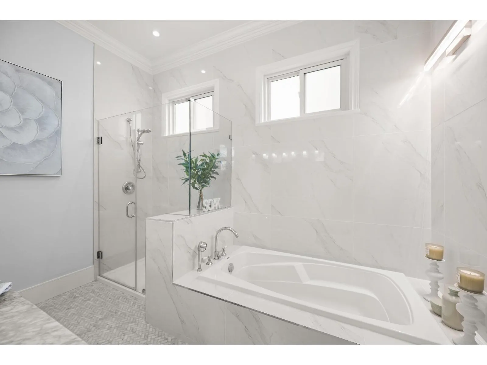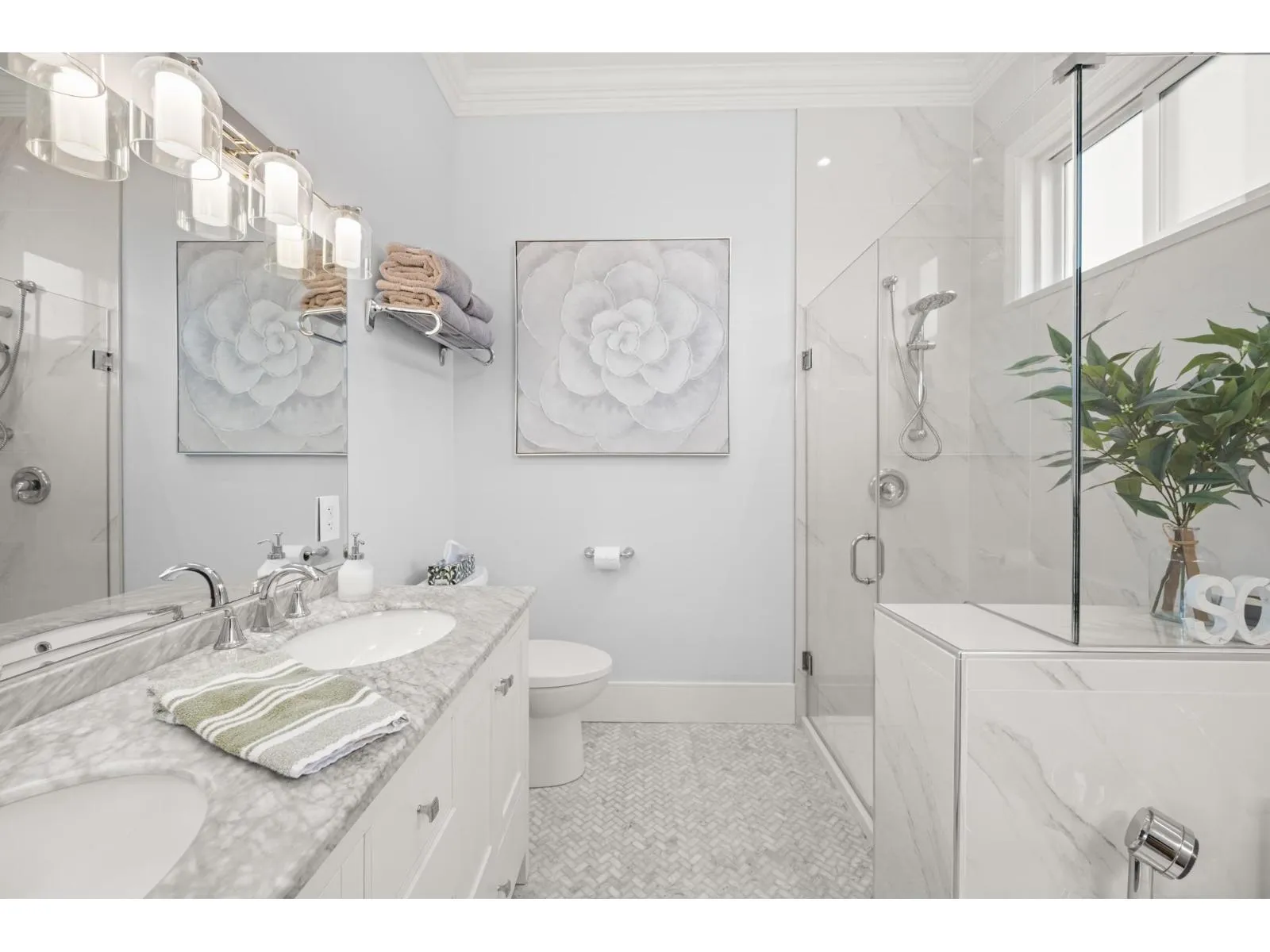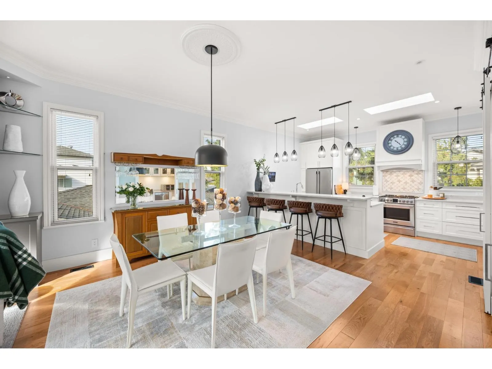 Stunning custom-built home offering 3,230 SF on a 6,200 SF lot in Pacific Douglas, overlooking Peace Arch Park. Upper main floor features 10-ft ceilings with skylights, is surrounded by windows, and opens to 800+ SF of decks. Enjoy open living, dining, and kitchen with a separate prep and pantry area, plus a home office, all showcasing quality custom finishings and