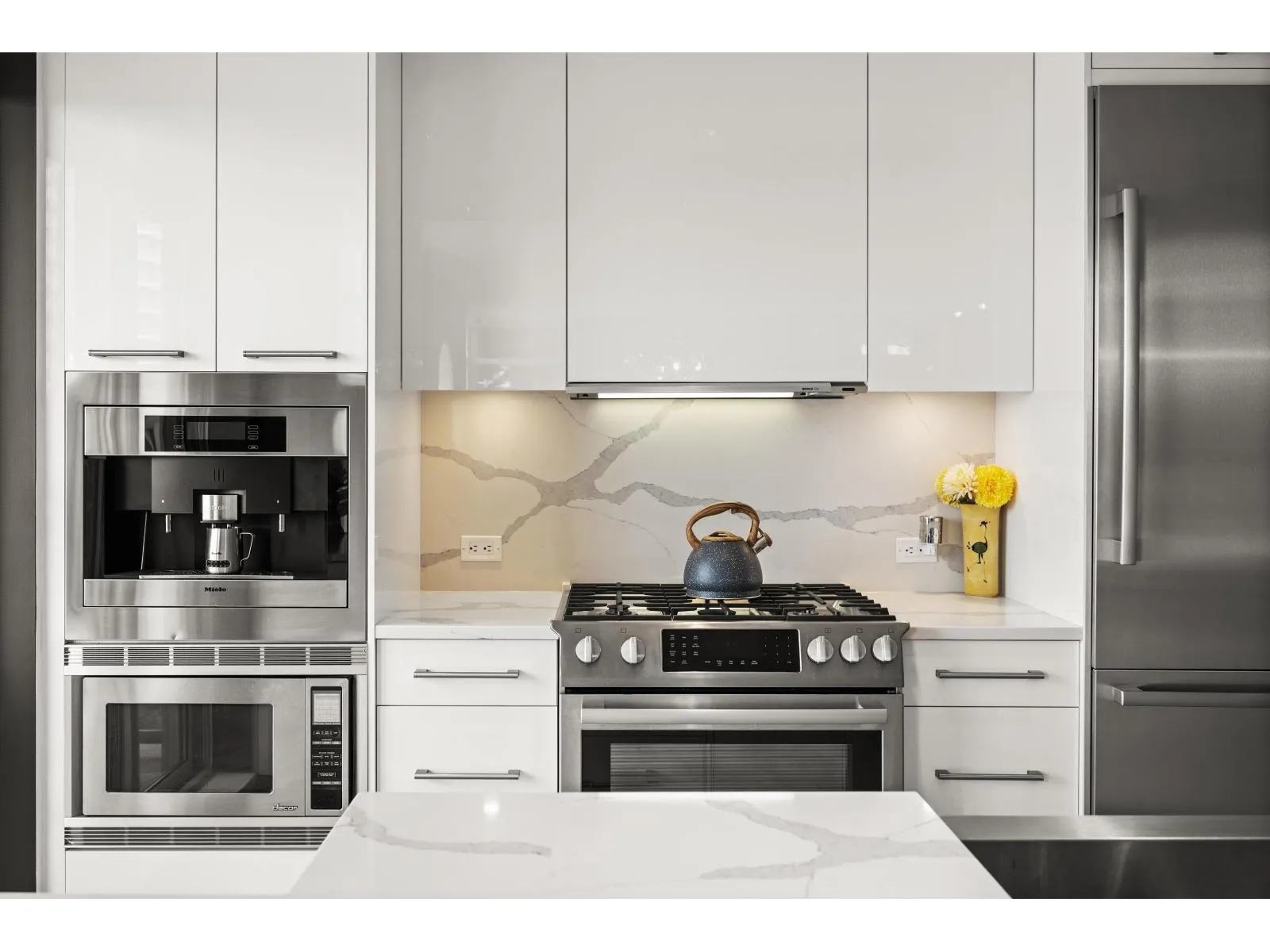 Welcome to Miramar Village by BOSA, one of White Rock’s most sought-after addresses. This bright and private 2 bed, 2 bath corner unit offers a spacious open floor plan filled with natural light, A/C and recent upgrades. The kitchen features a waterfall island, hidden storage, high-end appliances, built-in Miele coffee maker & wine fridge, plus a patio off the