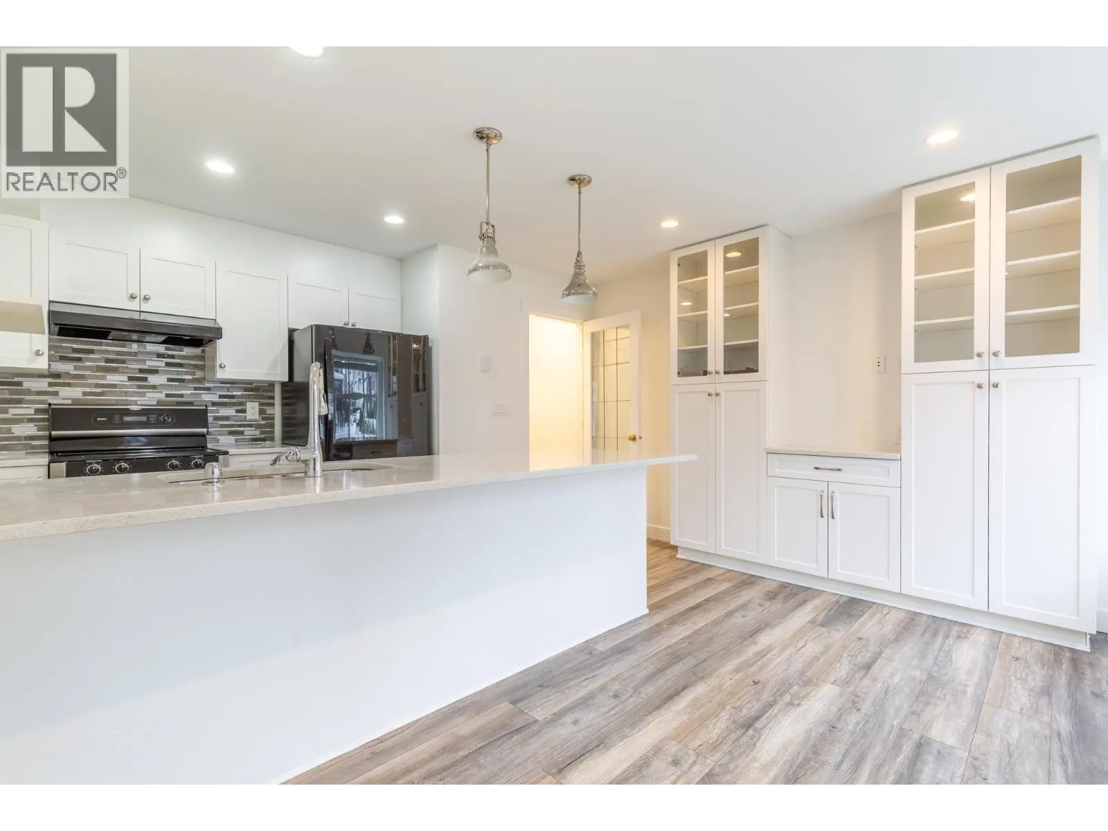 Large end unit townhome in popular “Gabriola” family oriented complex. Kitchen has been beautifully updated, ample cupboard space, black & S/S appliances with a sit up bar. All areas have been freshly painted; new carpeting on stairs and upper floor. Popular laminate on main floor. Lots of large windows to let natural light in. Cozy living room with gas fireplace