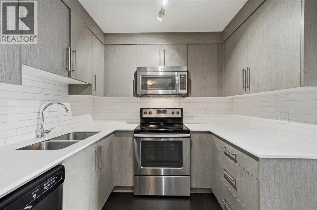 Move-in ready third-floor condominium with heated underground titled parking and additional storage, located in a well-maintained four-storey building. This 2-bedroom, 2-bathroom home offers 809 square feet of functional living space with a bright open-concept layout connecting the kitchen, dining, and living areas.The kitchen features stone countertops, stainless steel appliances, ample cabinetry, and a built-in workstation. Large windows provide natural light
