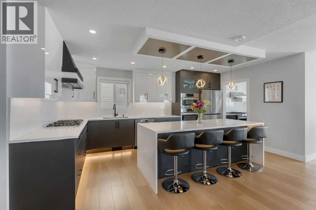 a premium walk-out lot with no neighbors in front or behind, this property backs onto a serene pond and faces an expansive green space providing both privacy and picturesque views. From the moment you arrive, the curb appeal is undeniable, featuring a beautifully updated exterior and striking modern lighting. Step inside to a grand foyer highlighted by an elegant curved staircase, setting the tone for the upscale finishes found throughout. The main floor is thoughtfully designed with both functionality and style in mind. It features a private den, a stunning formal living room with bay windows, and a dedicated dining room ideal for hosting. The heart of the home is the bright and inviting family room, complete with built-in shelving, a cozy fireplace, and an abundance of windows that flood the space with natural light. The chef-inspired kitchen is truly a showstopper, boasting built-in Bosch appliances, an oversized waterfall island, custom backsplash, and ample cabinetry. A separate spice kitchen adds extra convenience, while a secondary dining area is perfect for casual family meals. This area leads to a upgraded deck perfect for family BBQs. A 2-piece bathroom completes this level. Upstairs, you will find four generously sized bedrooms, including two with private ensuites. The luxurious primary retreat features a spacious walk-in closet, a beautifully appointed 4-piece ensuite with floor-to-ceiling tiled shower, and an elegant tray ceiling with built-in lighting. The second bedroom stands out with its vaulted ceiling, walk-in closet, and 3-piece ensuite. This level also offers a full bathroom with a skylight, a conveniently located l aundry room, and a versatile bonus room ideal for family gatherings or entertainment. The fully developed walk-out basement includes an illegal 2-bedroom suite with its own entrance, full kitchen, living area, full bathroom, dedicated laundry, and additional storage. Additional highlights include a double attached garage that is insulated, drywalled, and heated. Notable updates include: Hot water tank, windows, roof and siding (2022), air conditioning (2024). Located in the well-established and family-friendly lake community of Coral Springs, residents enjoy exclusive lake access along with a wide range of year-round amenities. You’ll appreciate the close proximity to reputable schools, shopping plazas, grocery stores, restaurants, public transit, and essential services. This one-of-a-kind property truly has it all: luxury, space, functionality, and an unbeatable location. A rare opportunity you won’t want to miss! (id:64429)